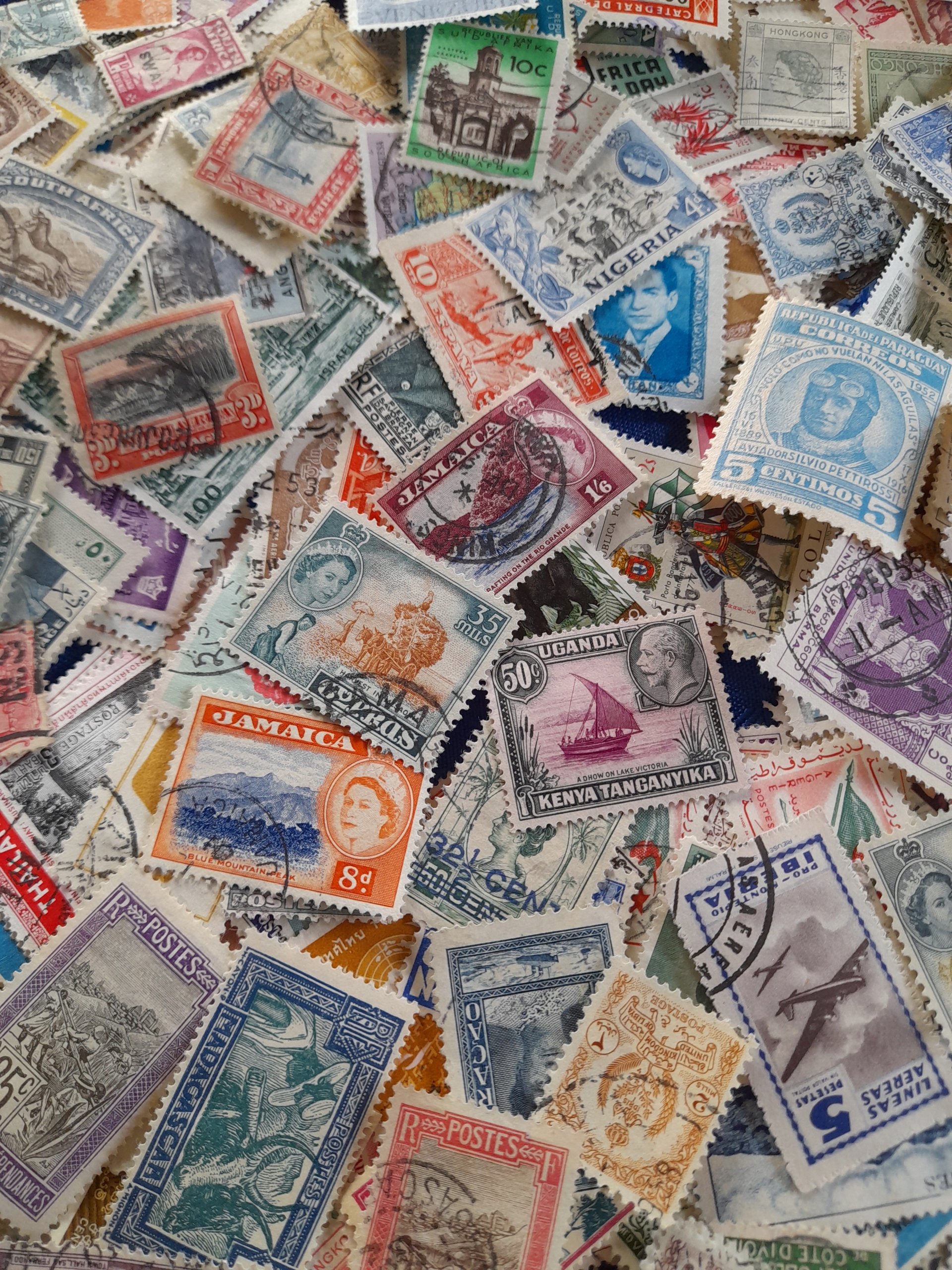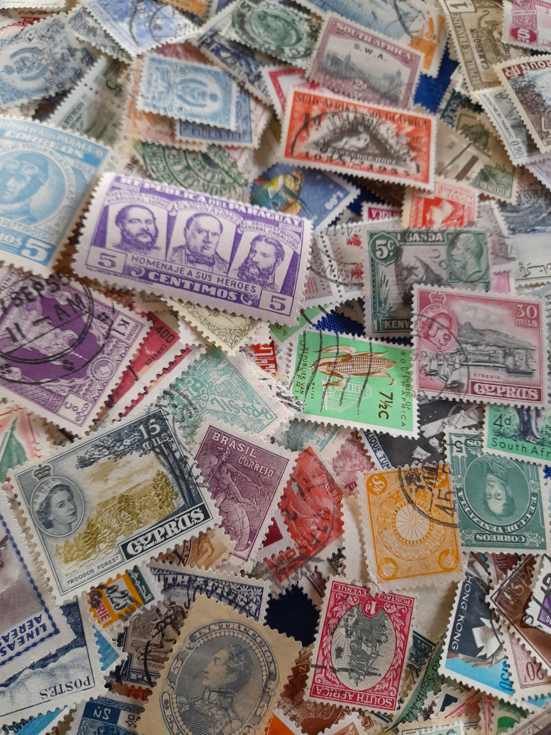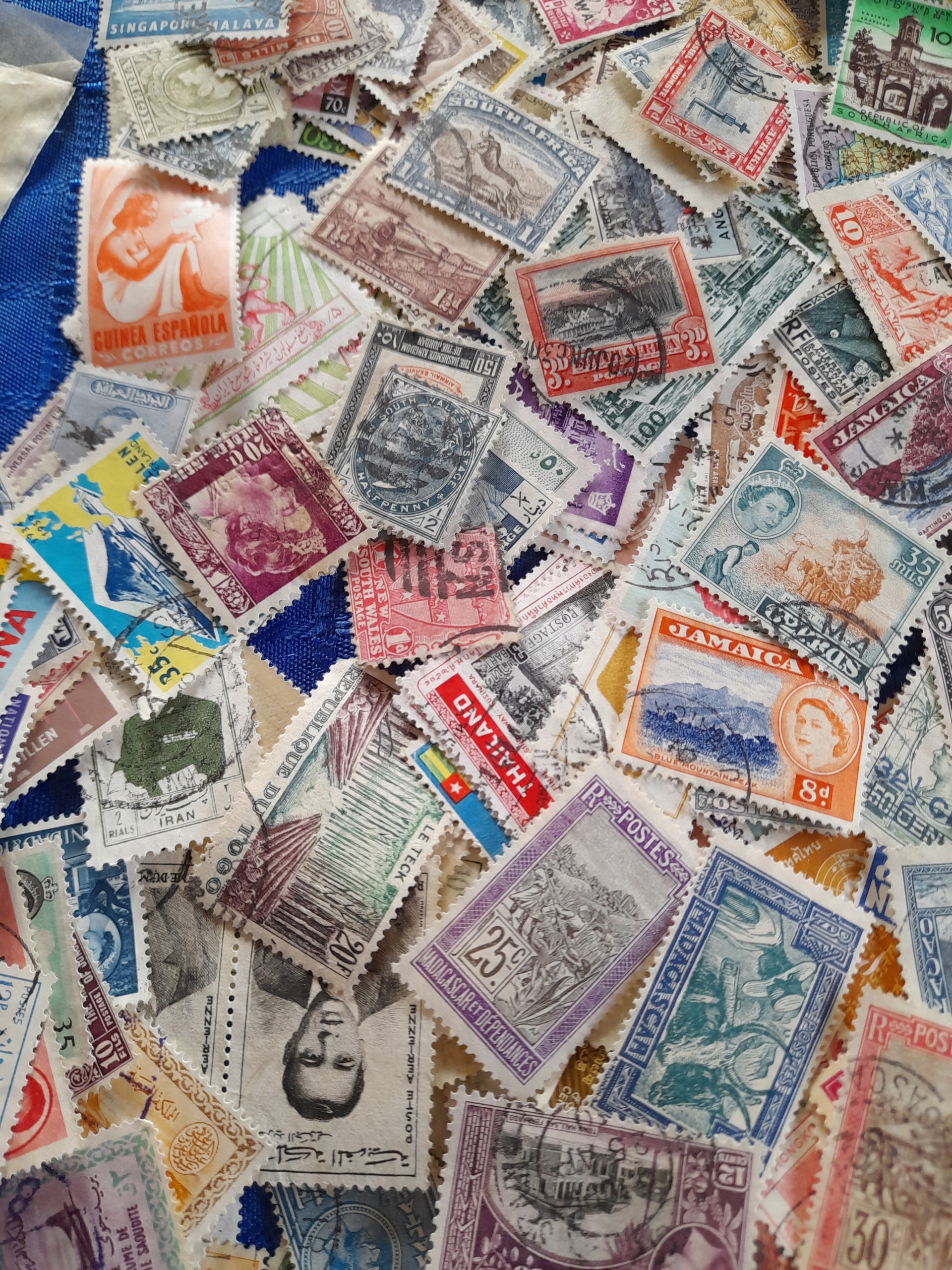 Скринька з великою ВІКОВОЮ КОЛЕКЦІЄЮ СОТЕНЬ МАРОК СВІТУ ТА КОЛОНІЇ