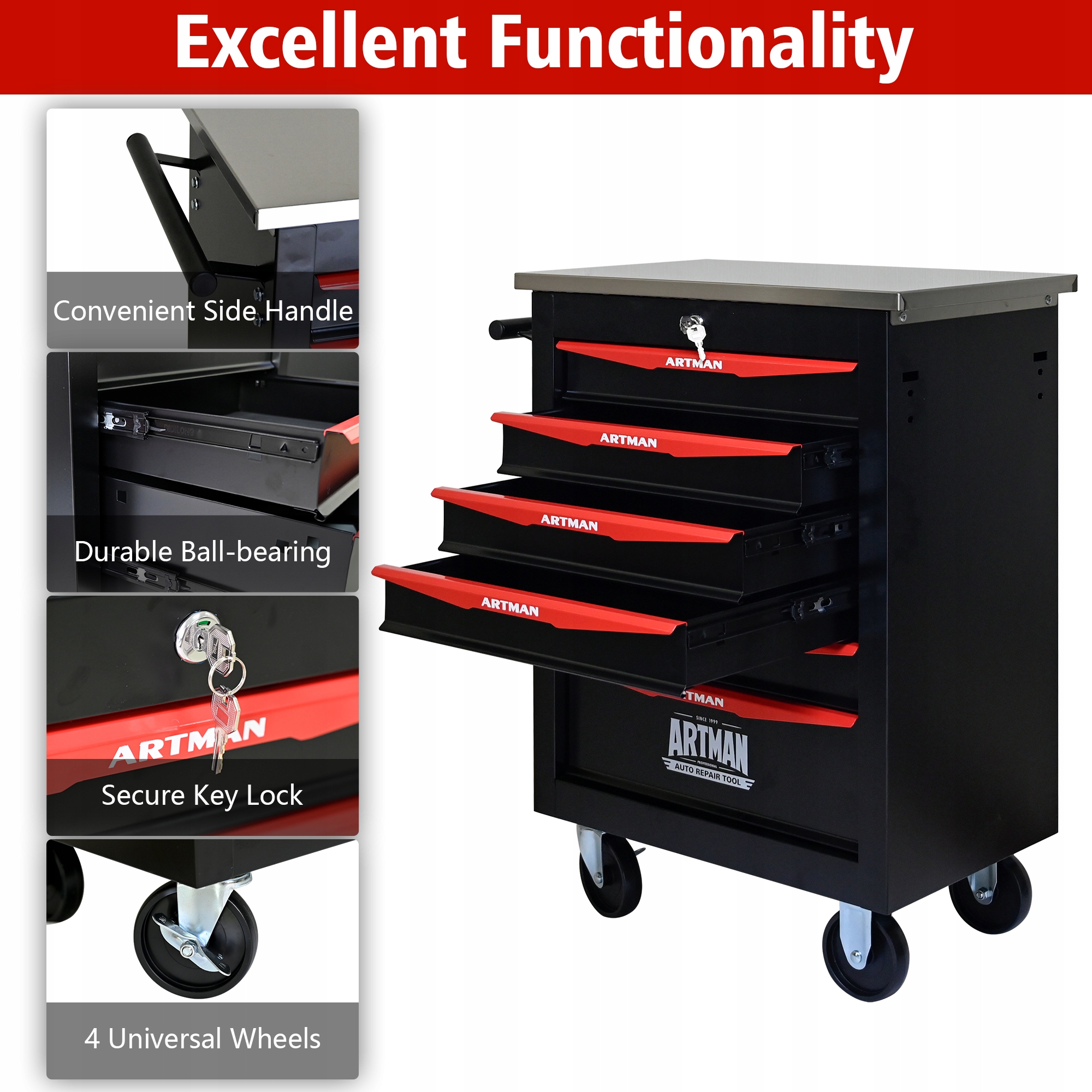 【Artman】 Идеальный органайзер для ящика для инструментов имеет 6 плавно выдвижных ящиков с центральным замком. Эта система обеспечивает безопасное хранение всего содержимого, с легкостью защищая ваши ценные инструменты от потери или несанкционированного доступа.