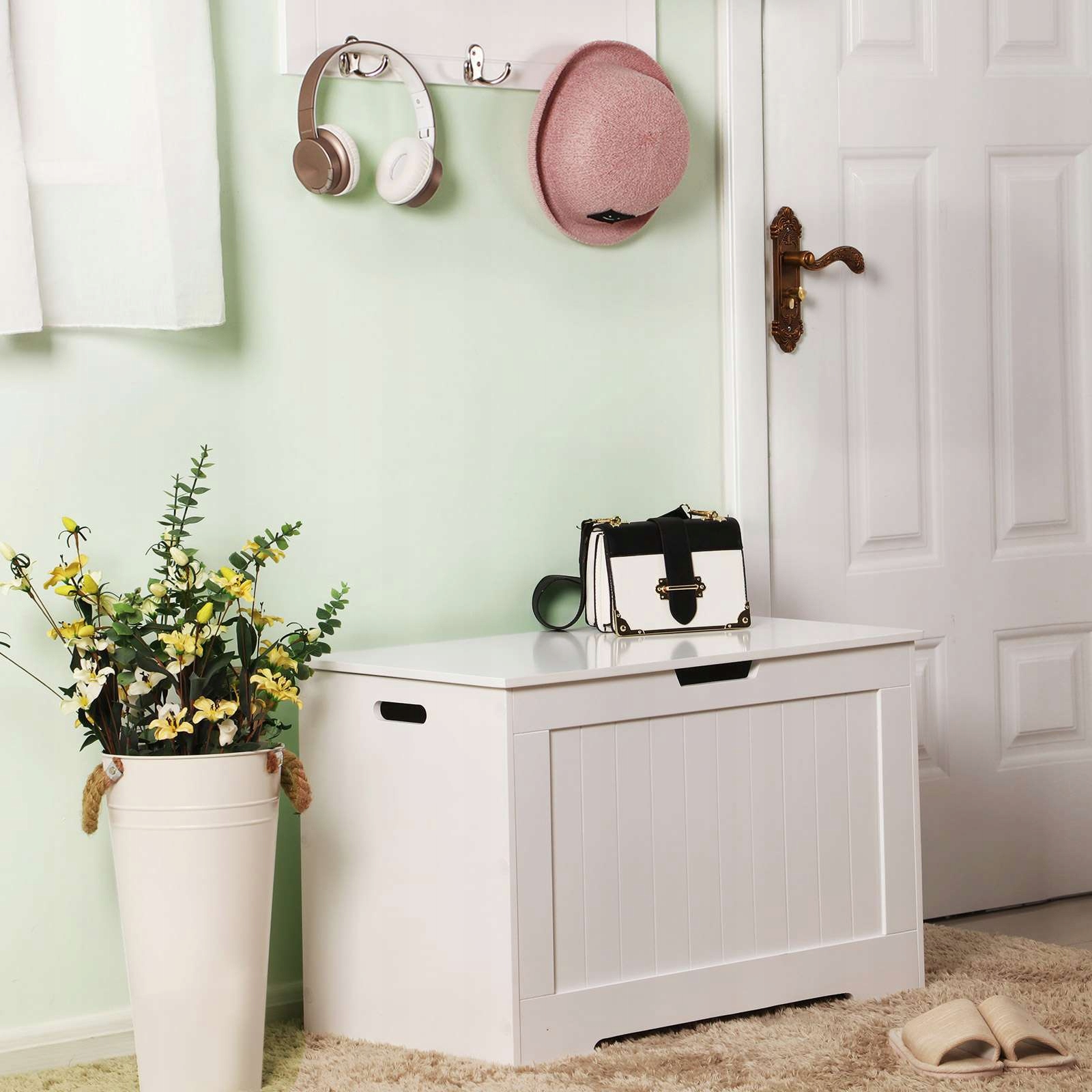 Вы ищете идеальный способ элегантно и практично организовать свое пространство? Белый ящик для хранения Reta – правильное решение. Его сдержанный дизайн скрывает безграничные возможности его использования. Положите туда белье, игрушки, обувь или все, что придет вам на ум. Тебе решать. Этот элегантный сундук из качественного ДСП белого цвета легко впишется в любой интерьер. Благодаря своим размерам он обеспечивает достаточно места для хранения вещей и, имея грузоподъемность до 180 кг, также служит стулом для сидения. Петли безопасности предотвращают внезапное закрывание, поэтому с этим справятся даже дети.