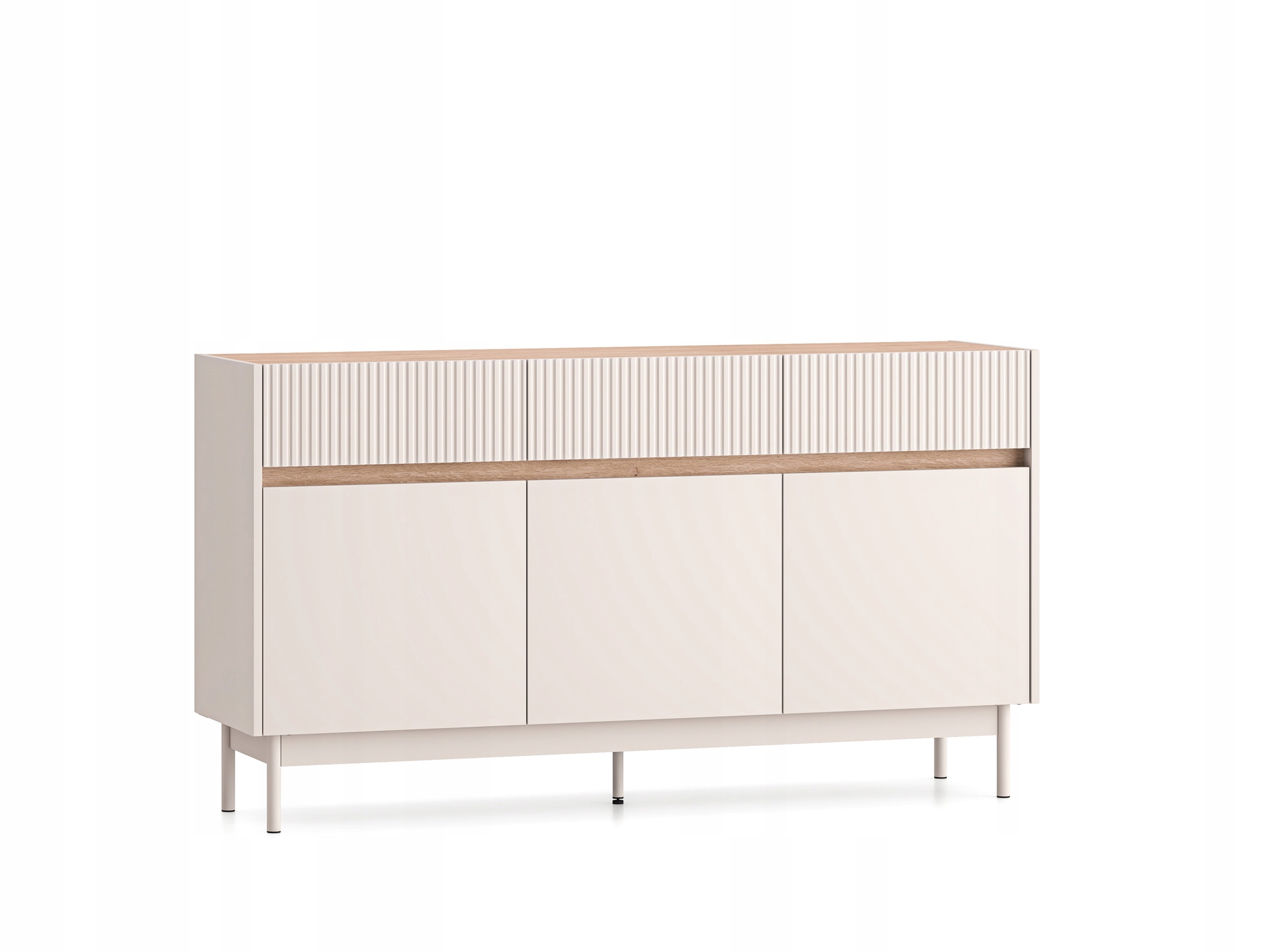 Большой Dunea 05 Dest of Brest of Brests - идеальная мебель для хранения. За тройной дверью спрятана в шести вместительных ниш. Вы будете хранить одежду, полотенца или посуду. Верхняя часть мебели состоит из трех ящиков, идеально подходящих для документов или домашнего текстиля. Широкий топ будет идеальным местом для демонстрации элегантных ваз или сувениров для путешествий. Выберите комод Dunea и сохраните заказ в вашем интерьере. • Функциональная мебель в красивом издании. • Ящики с полной функцией слайда. • Прочные, металлические ноги. • Петли с тихой функцией закрытия.