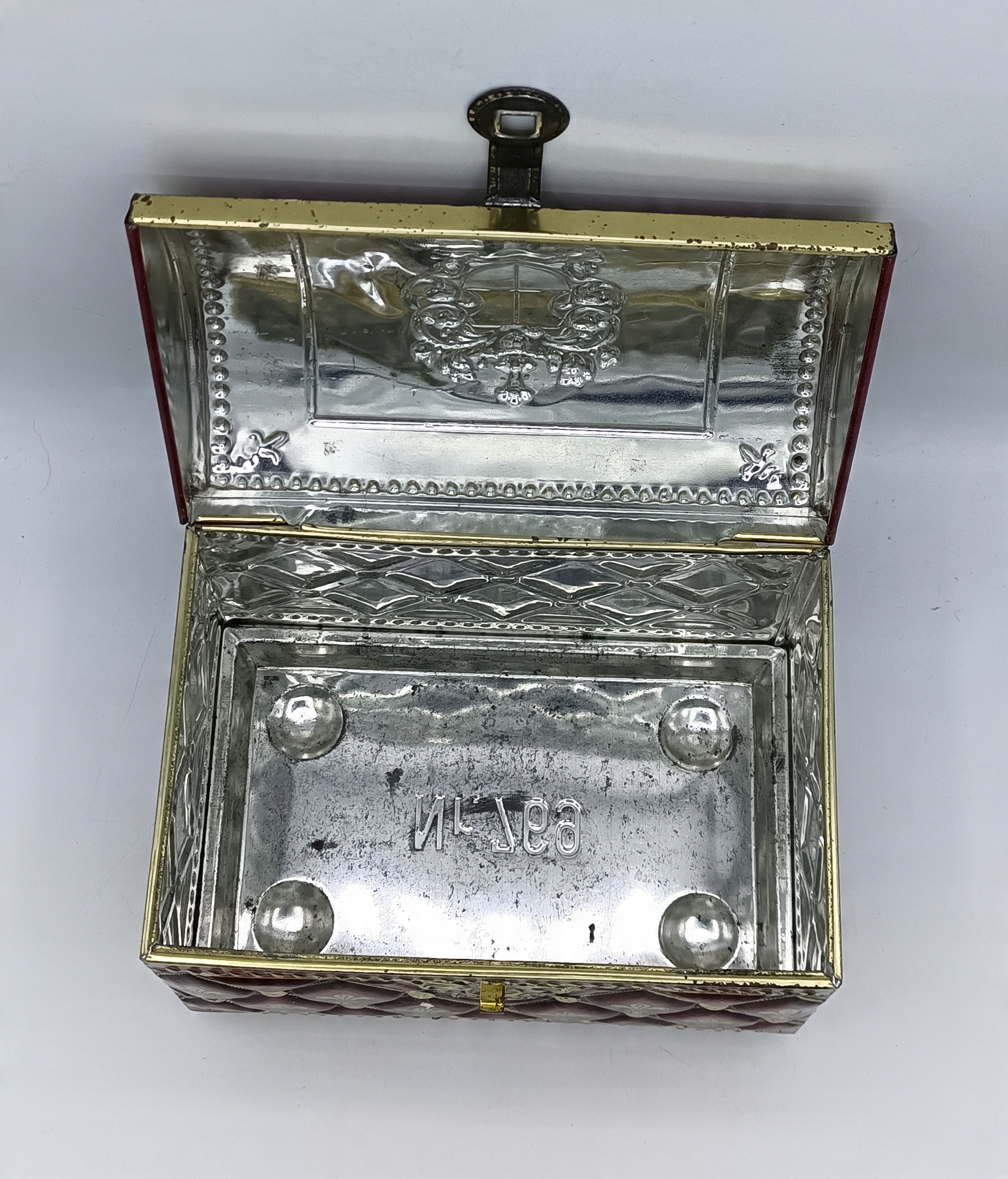 Дворцовый сундук с гербом - большая винтажная металлическая банка - 15,5 см.
