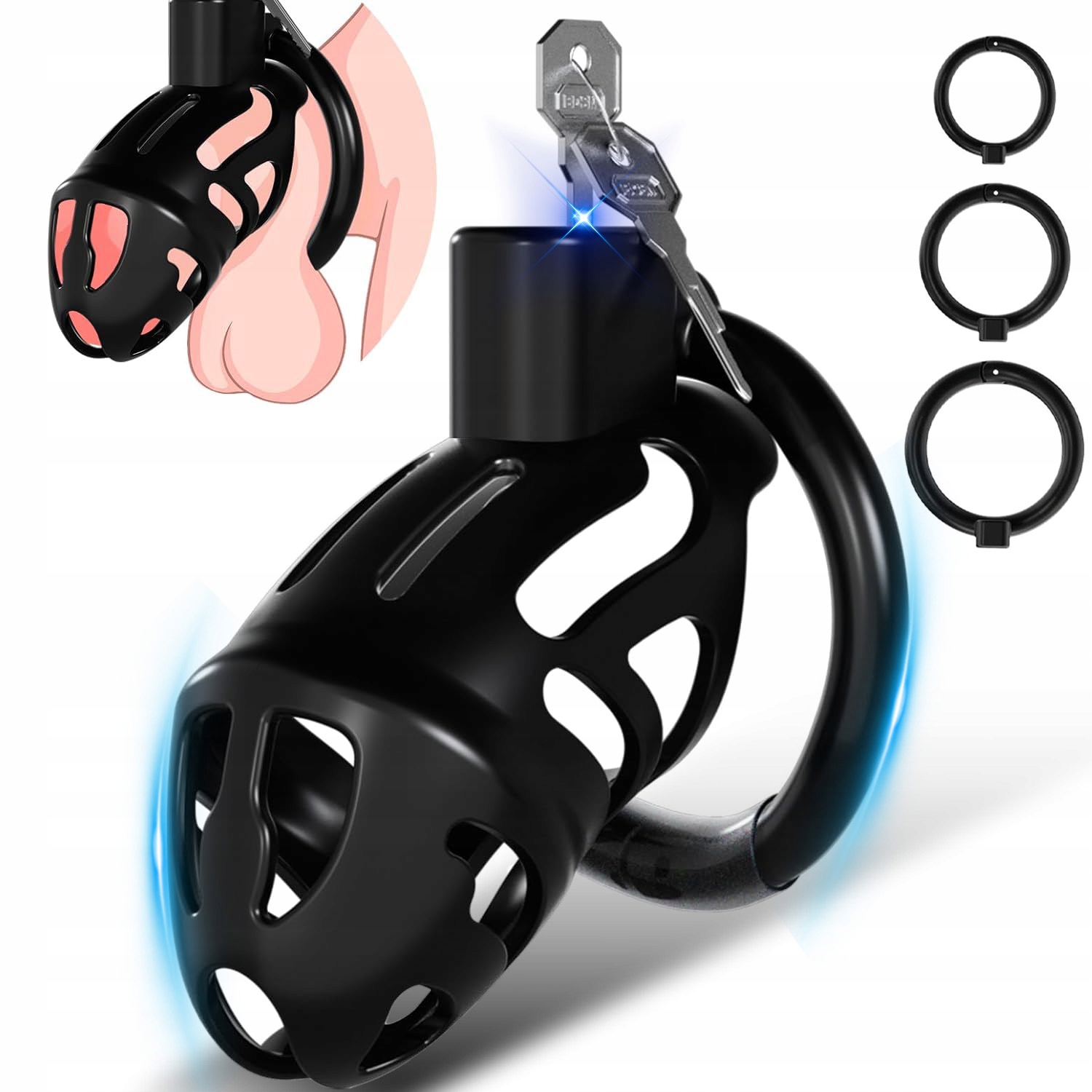 НЕЗАМЕТНАЯ ПЛАСТИКОВАЯ КЛЕТКА ДЛЯ ПЕНИСА С 3 КОМФОРТНЫМИ КОЛЬЦАМИ