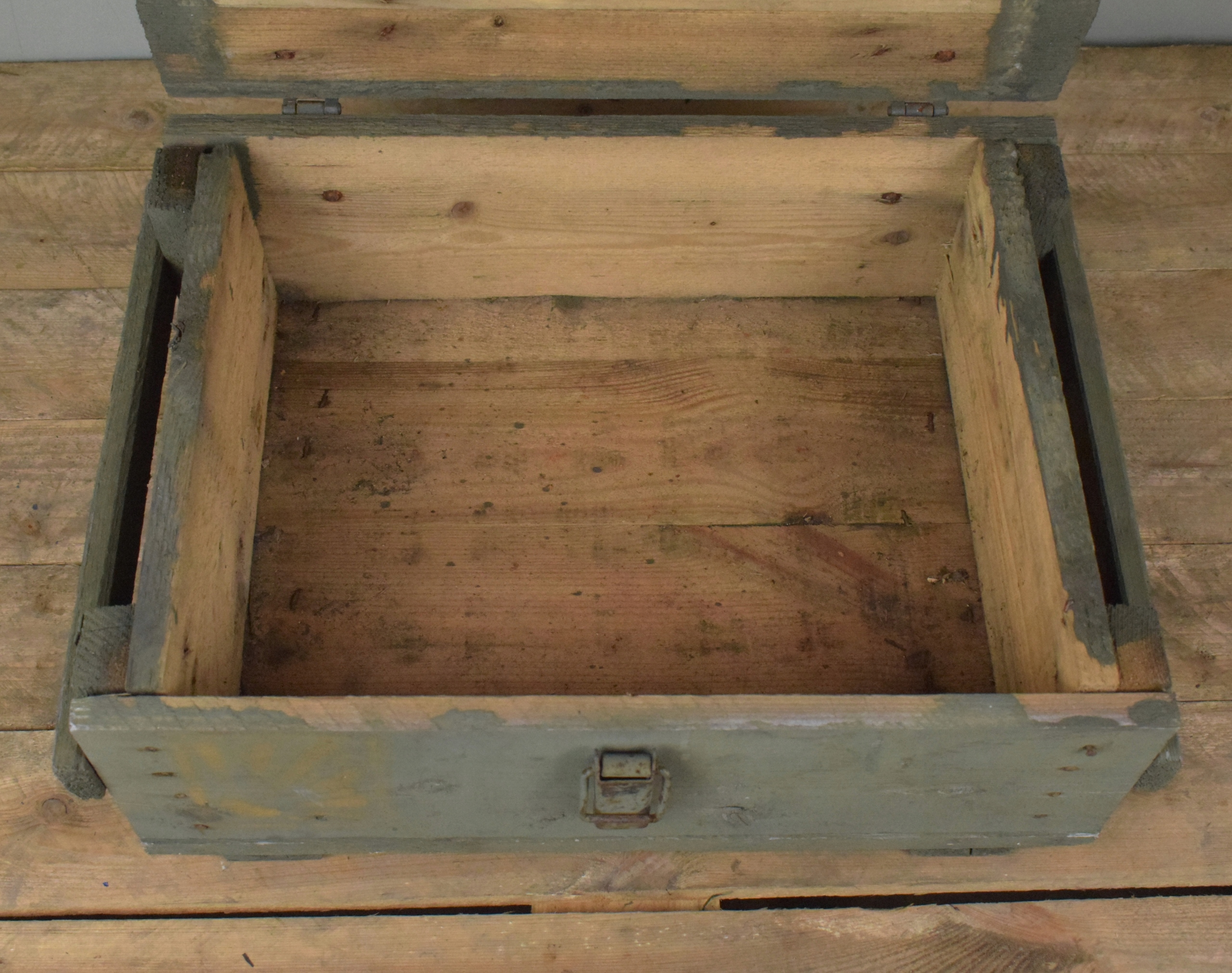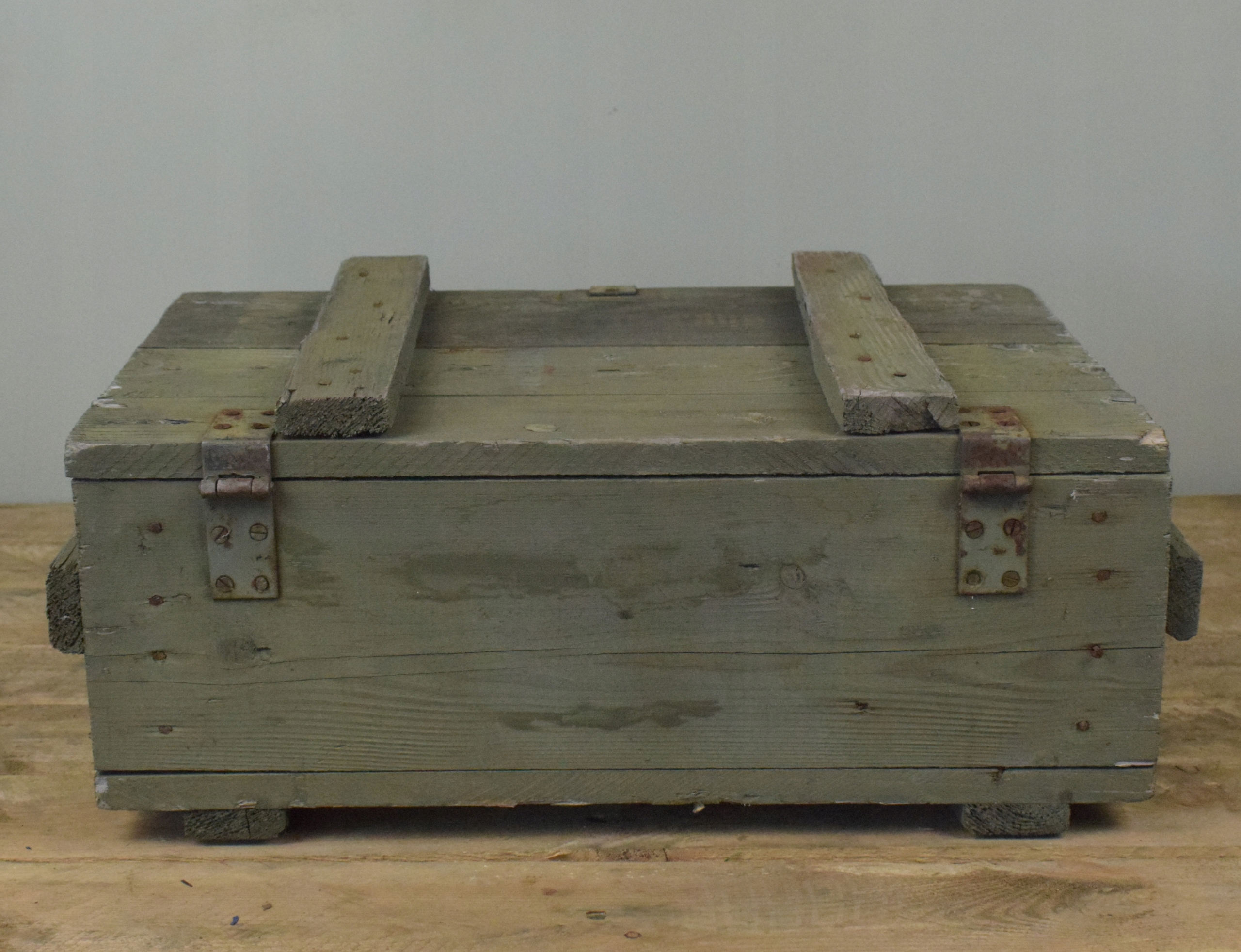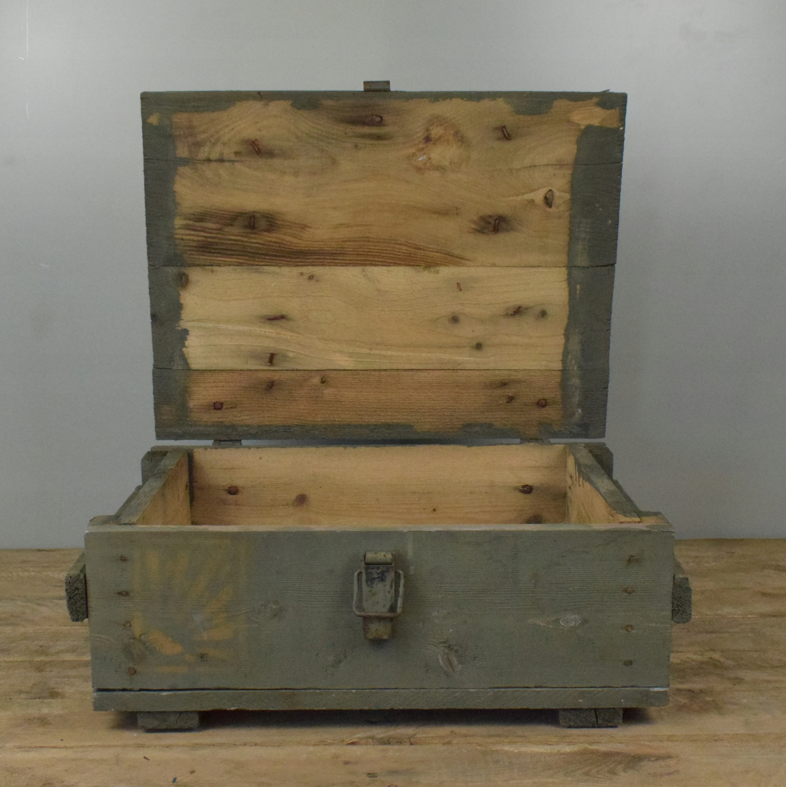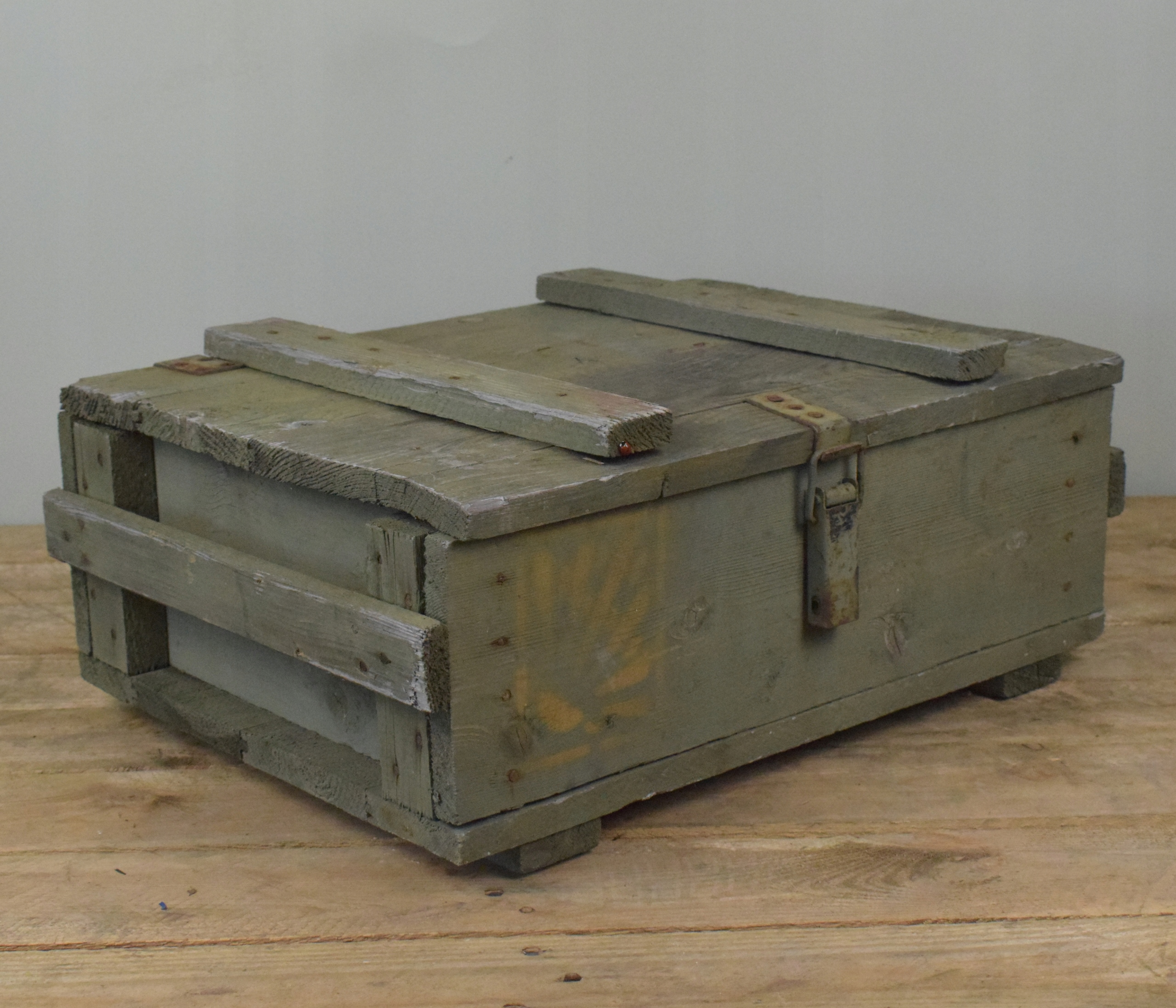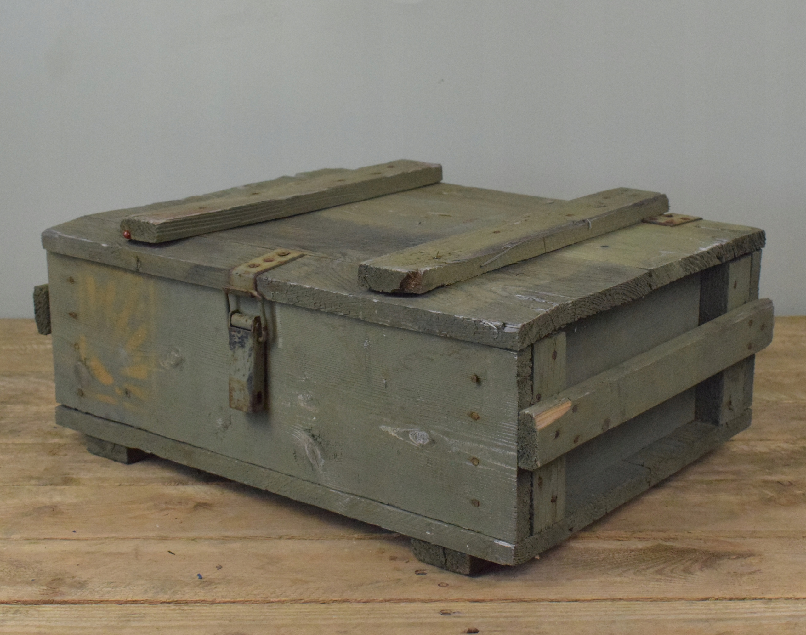 skrzynia mała drewniana solidna wojskowa z klamrą 50cm