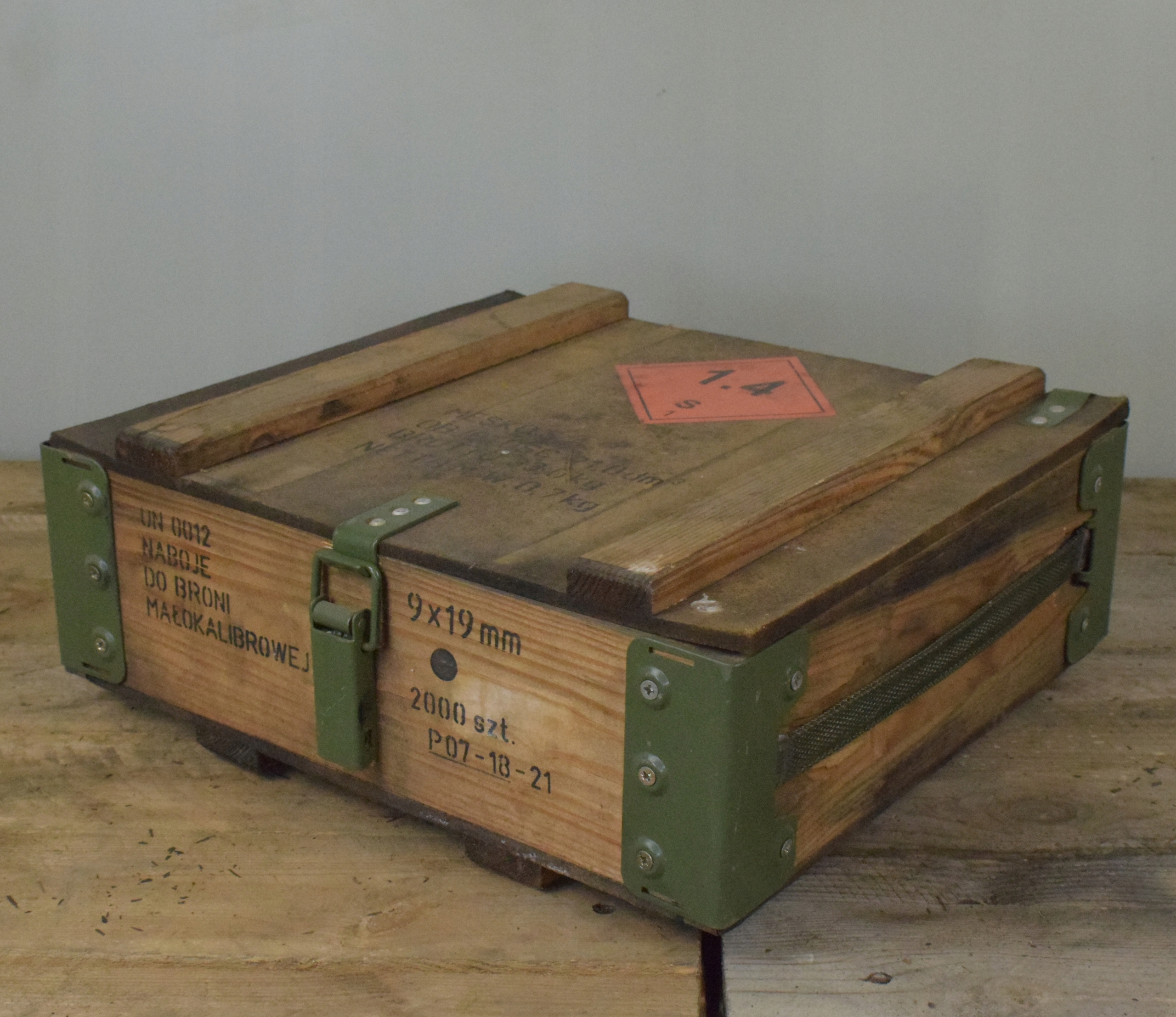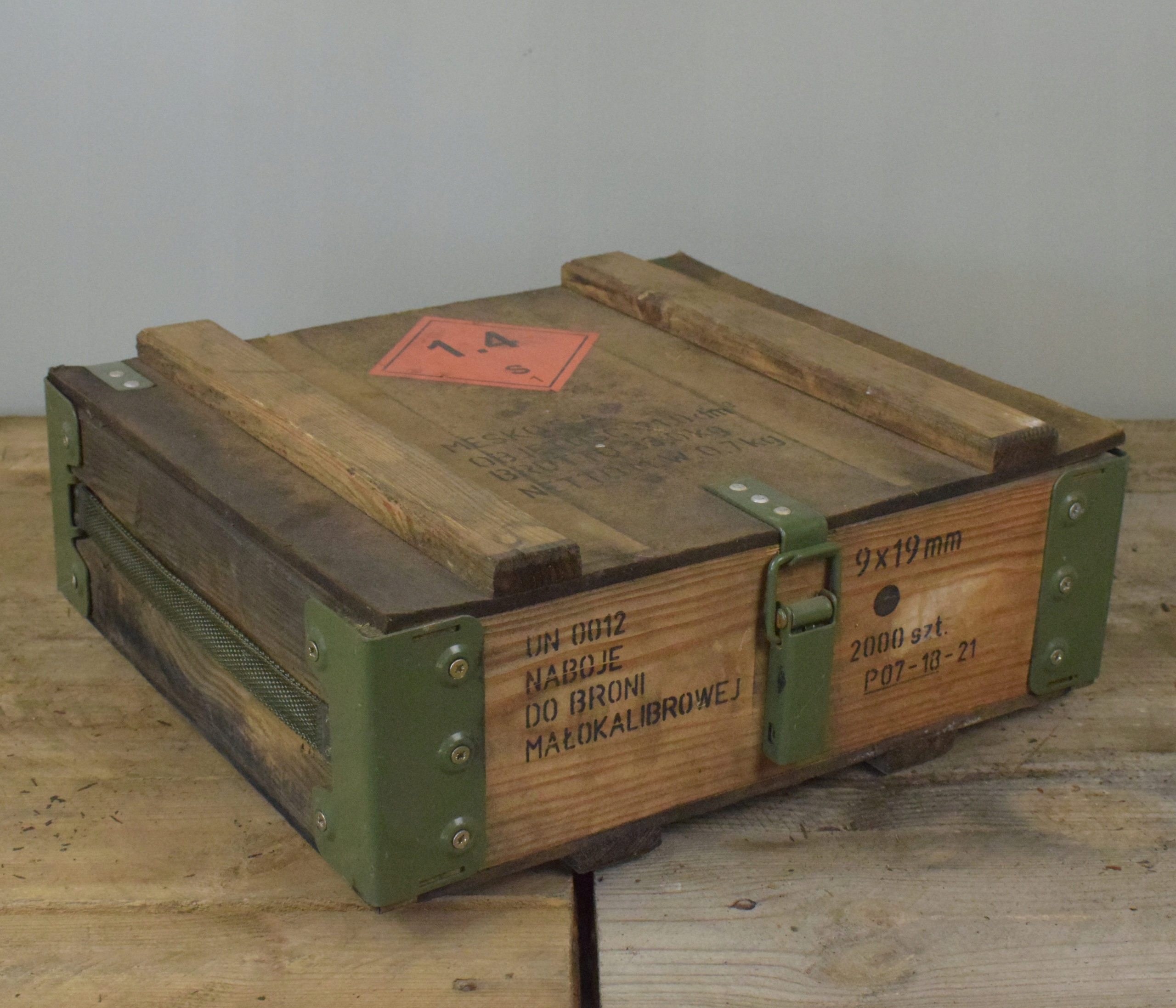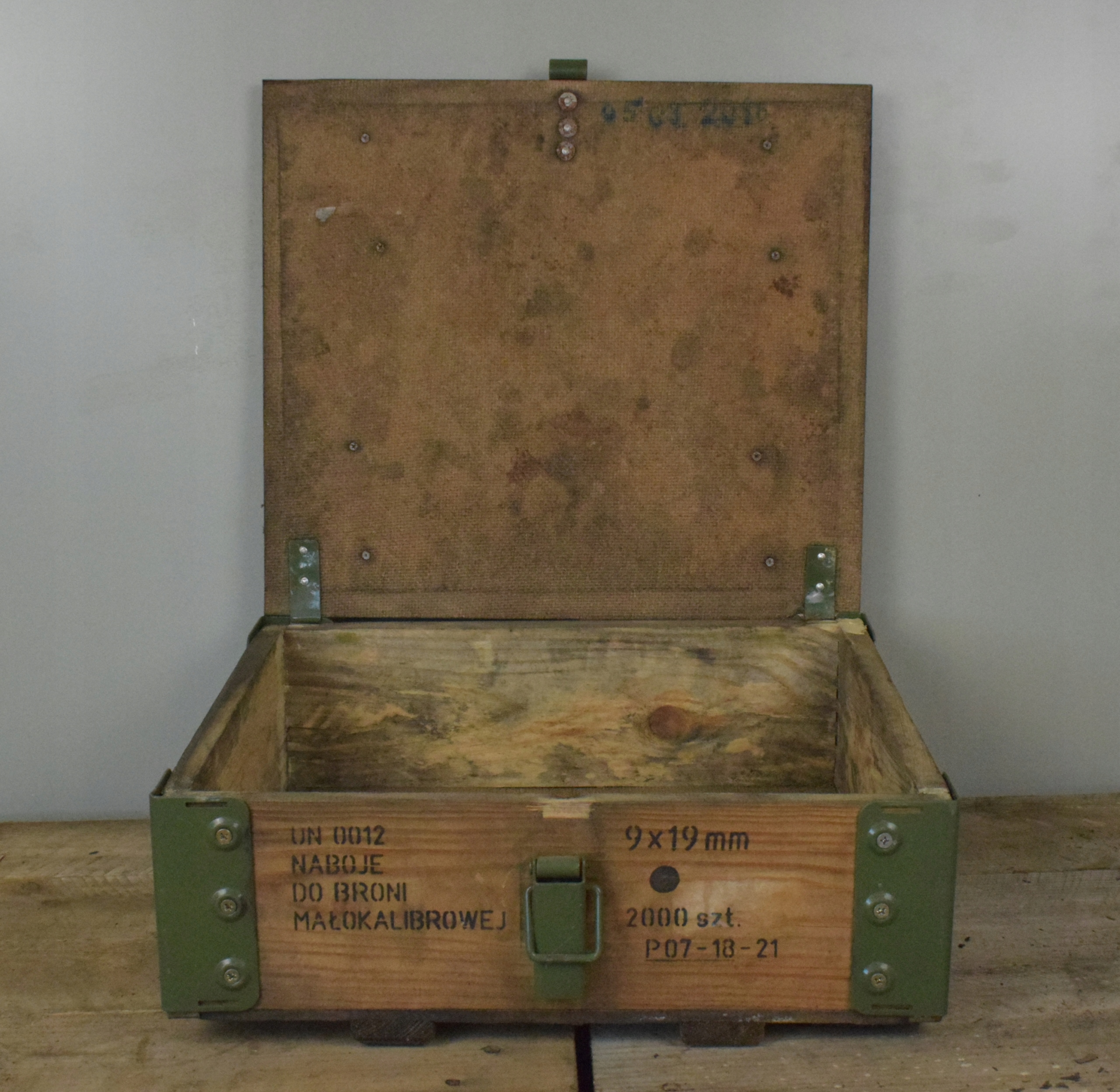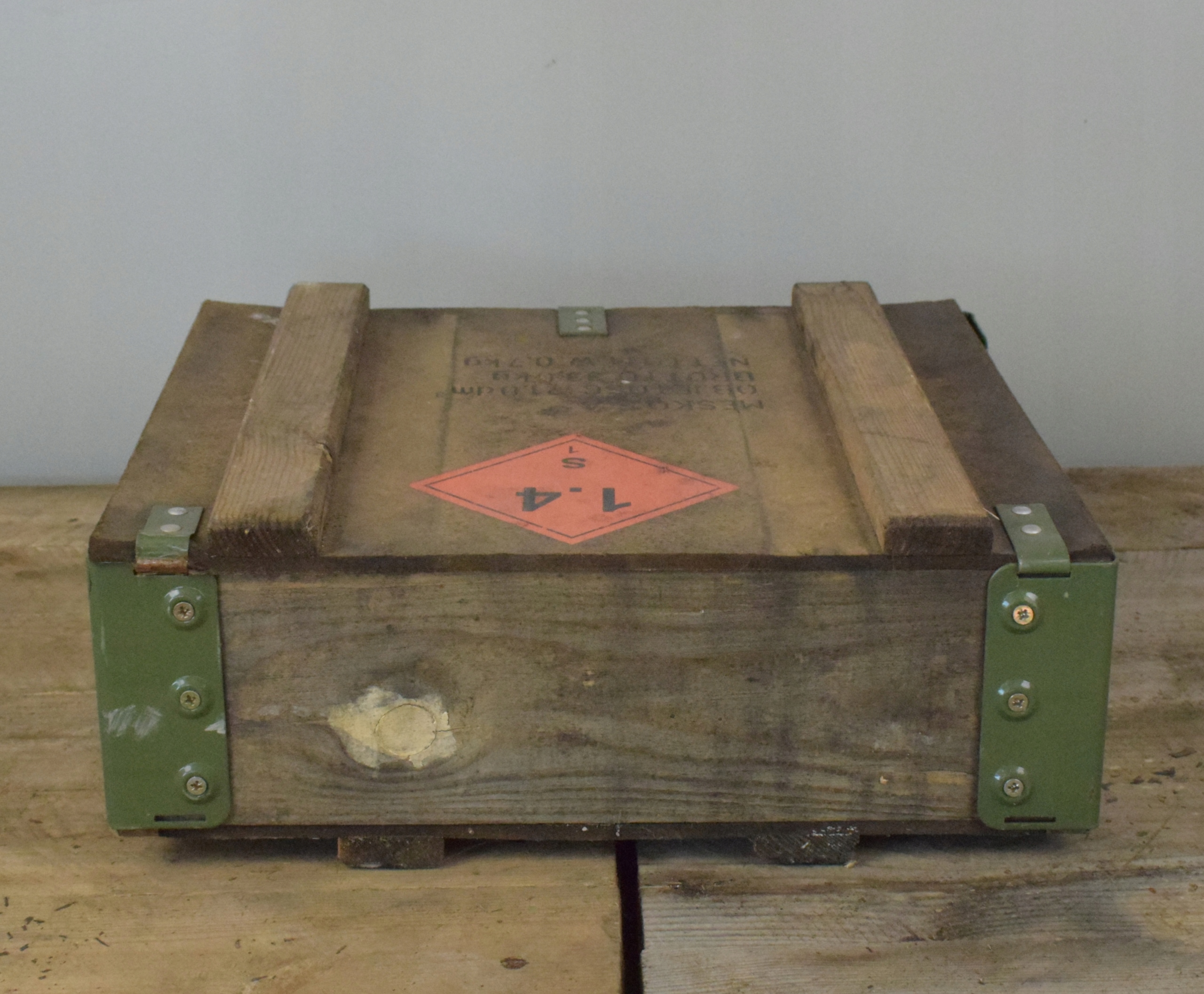 skrzynia mała drewniana solidna wojskowa z okuciami klamrami M33 12L