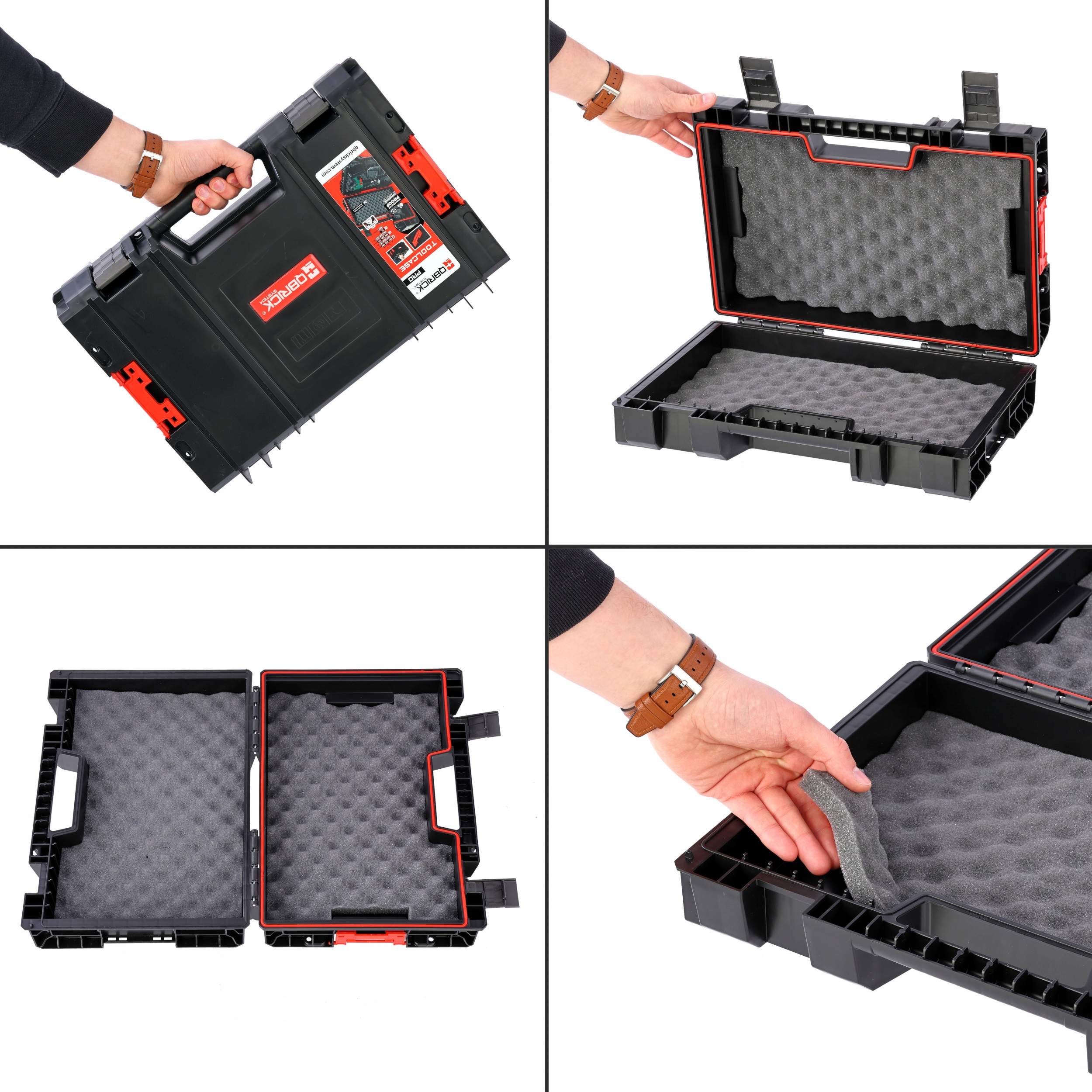 Усиленная конструкция кузова обеспечивает высокую устойчивость к ударам и механическим повреждениям, а вместительная полка позволяет удобно хранить практические инструменты. Уплотнитель в крышке обеспечивает отличную защиту от пыли, грязи и влаги.