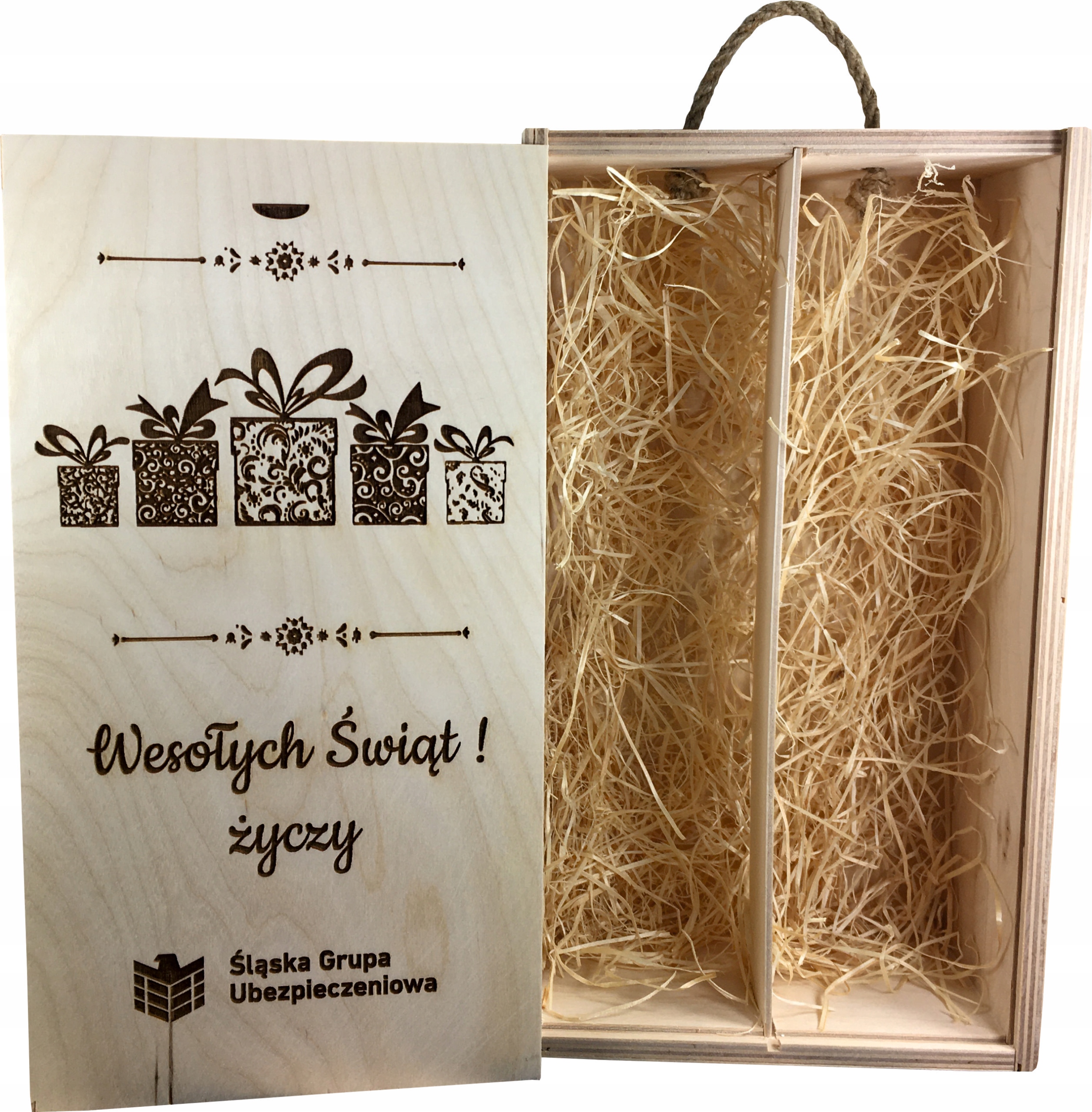 SKRZYNKA PUDEŁKO NA DWA WINA DWIE BUTELKI ALKOHOLU ŚWIĘTA GRAWER LOGO FIRMA