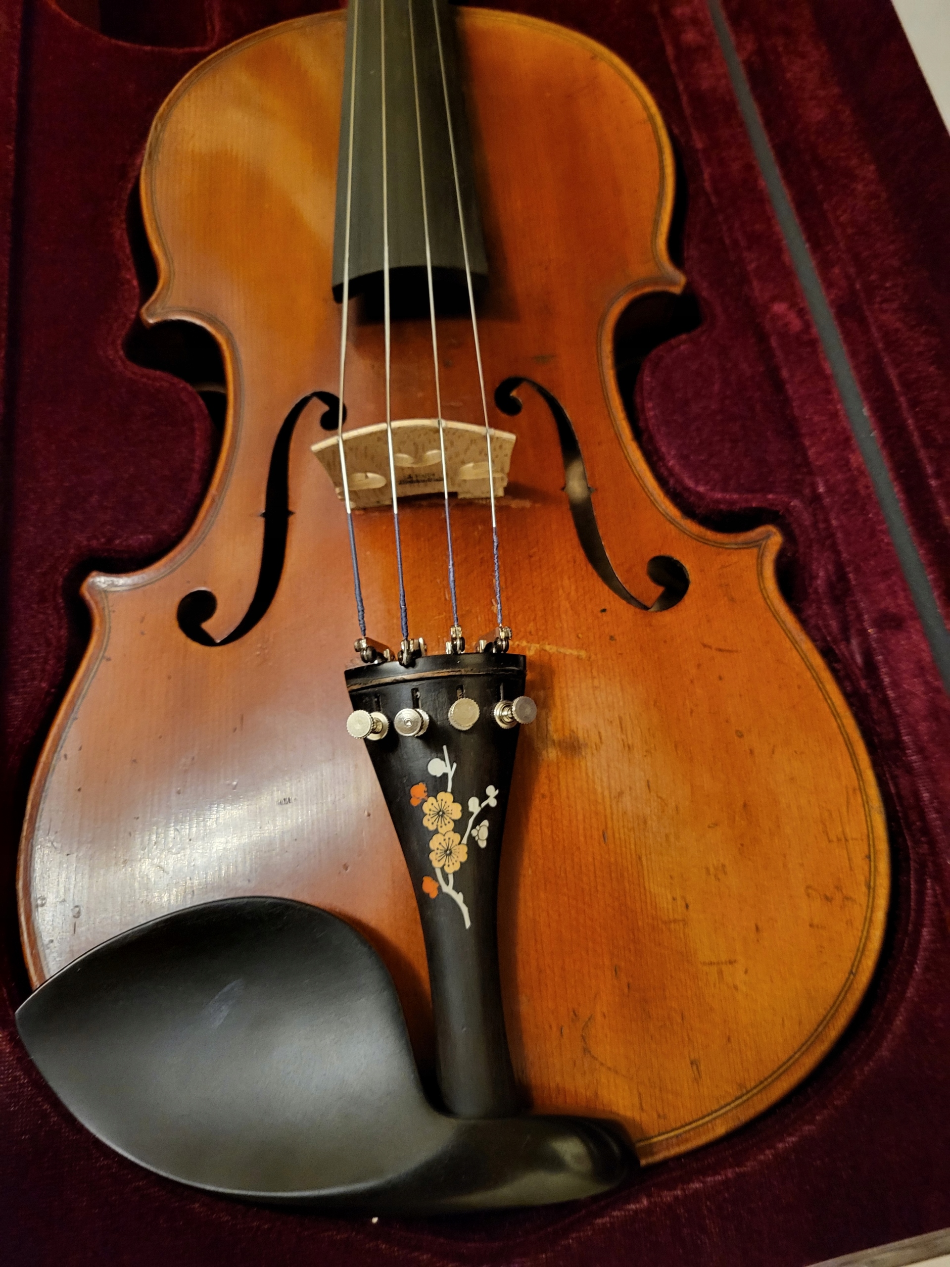 Скрипка 4/4, французское производство, около 80 лет, модель Страдивари. Инструмент вернулся от мастера, который заменил колки на черные, гриф, струнодержатель из черного дерева, инкрустированный перламутром, новый бридж, упор для подбородка и. душа. Новые струны Пирастро. Скрипка имеет громкий звук, не имеет трещин, покрыта оригинальным лаком. В комплект входит новый высококлассный футляр и новый лук для желающих стоимостью 500 злотых. Звук - запись этой скрипки могу отправить в WhatsApp.