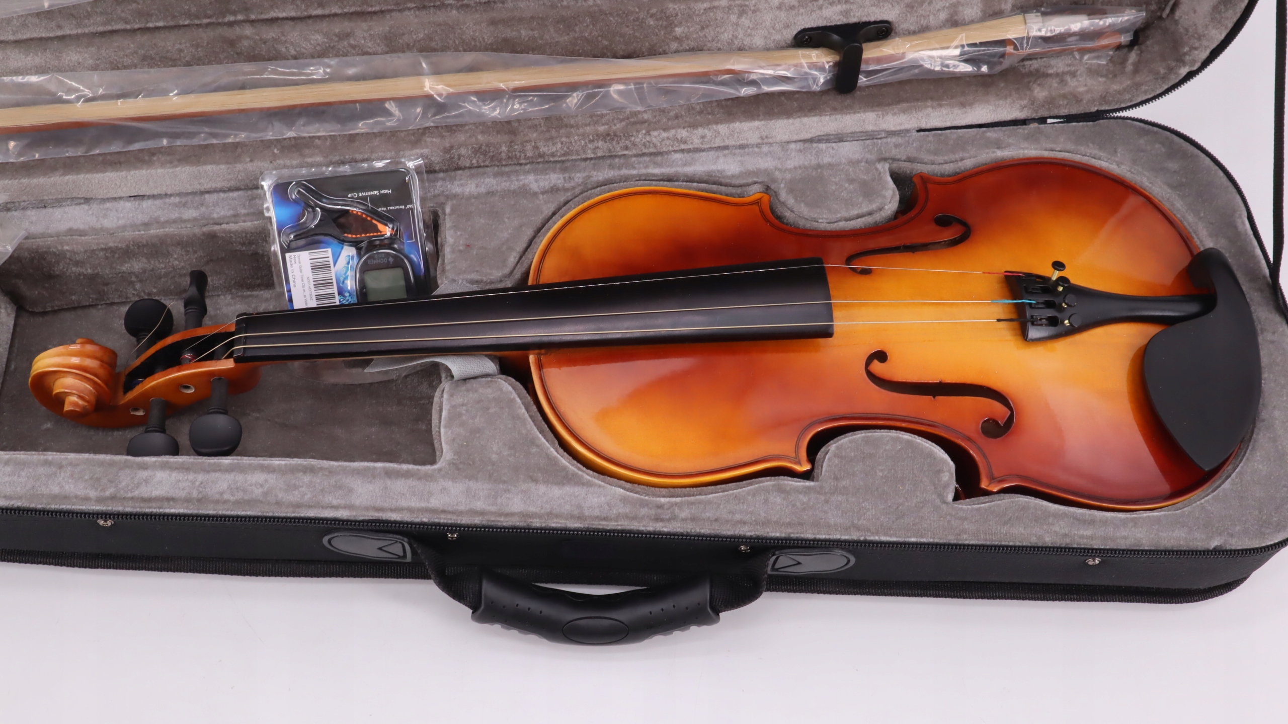 - В комплект входят: скрипка, 2 смычка, тюнер, футляр, канифоль.