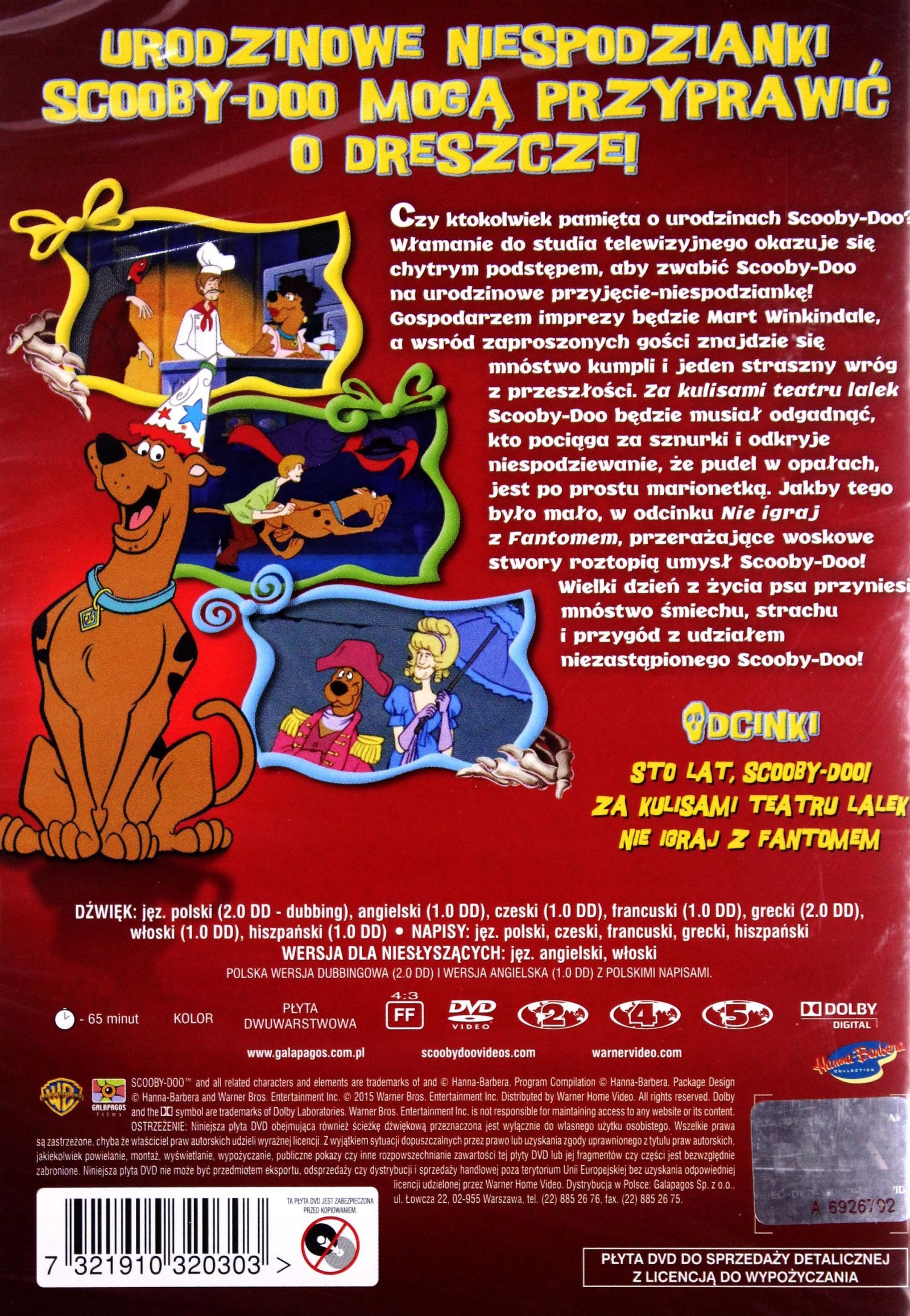 Сюрпризы на день рождения в стиле Скуби-Ду могут вызвать у вас мурашки по коже! Кто-нибудь помнит день рождения Скуби-Ду? Большой день в жизни собаки принесет много смеха, страха и приключений вместе с незаменимым Скуби-Ду! В релиз вошли серии: «С Днем Рождения, Скуби-Ду!», «За кулисами кукольного театра», «Не играй с призраком».