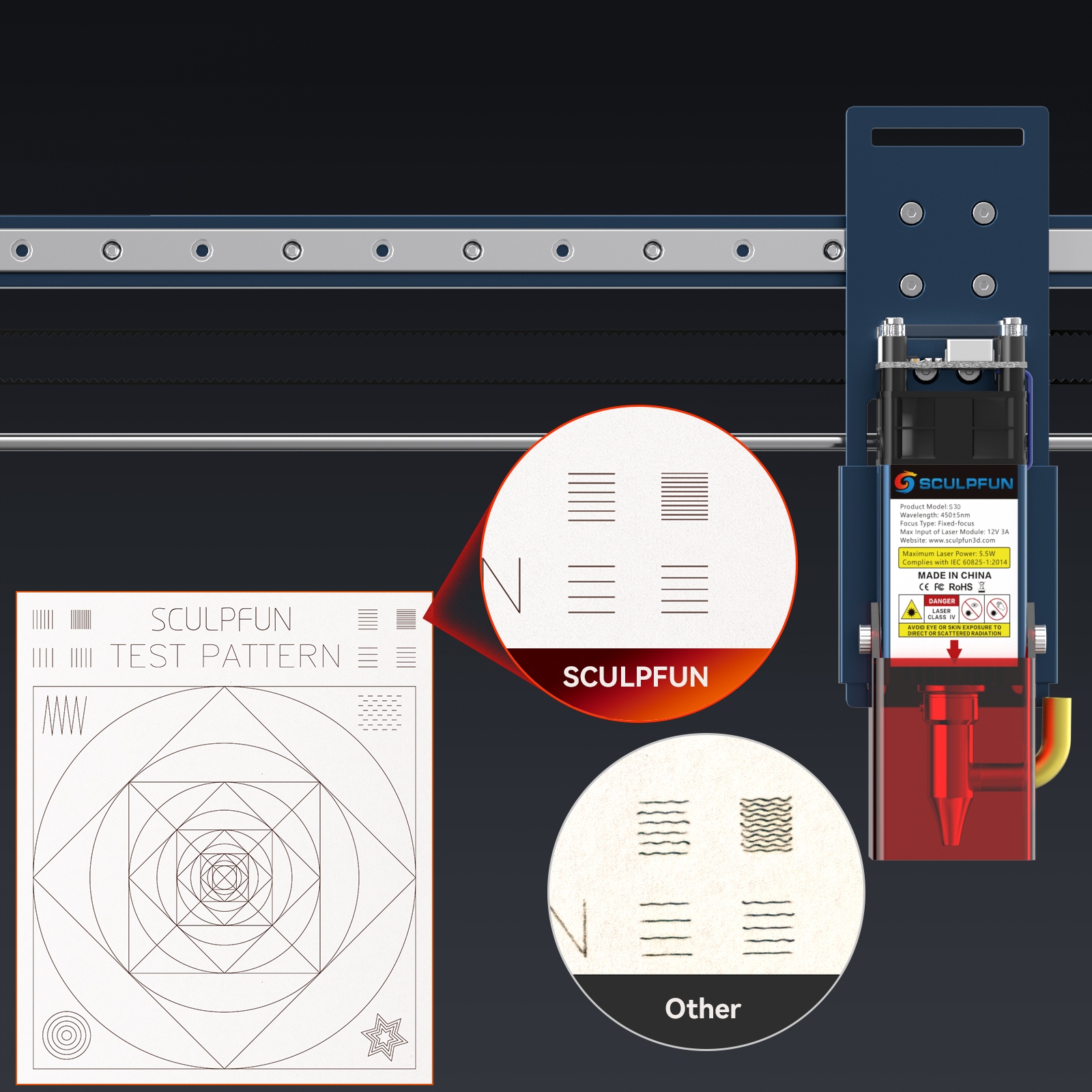 ▶ Отличная эффективность гравюры: лазер S30 5 W очень прибыль и может удовлетворить 90% потребностей хобби; Вы можете разрезать древесину на 5 мм толщиной и 3 см фанеры за раз. И благодаря этому, он достигает точности гравировки на промышленном уровне благодаря чрезвычайно прочной и точной линейной скользящей рельсе на оси x, без волнистой схемы при вырезании небольших объектов. Область гравюры с большой площадью 410 * 400 мм может удовлетворить различные потребности в гравировке.