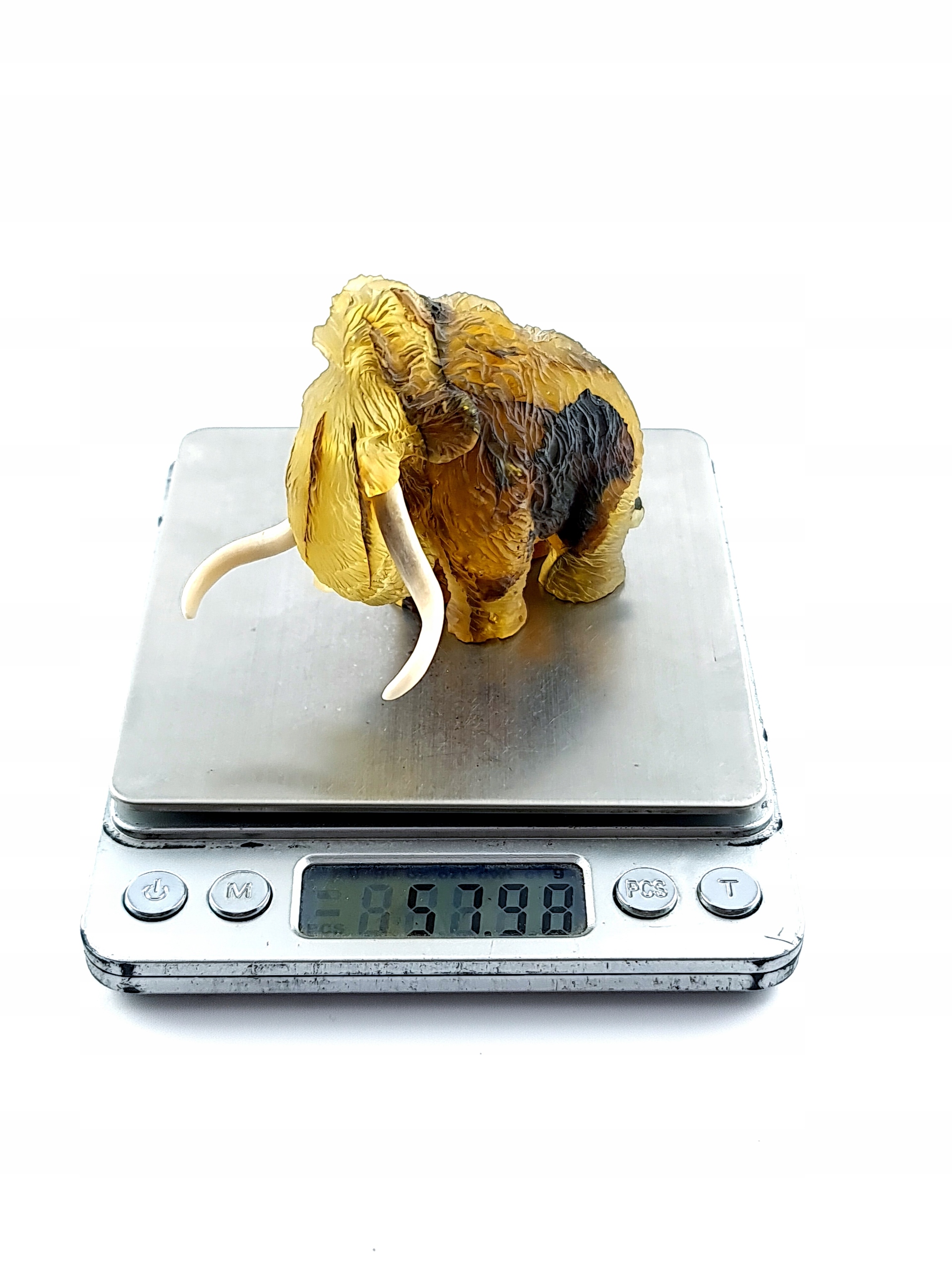 Красивая, замысловатая, ручная скульптура мамонта из цельного куска 100% натурального, Прибалтика б> янтарь. Точная работа с деталями!
