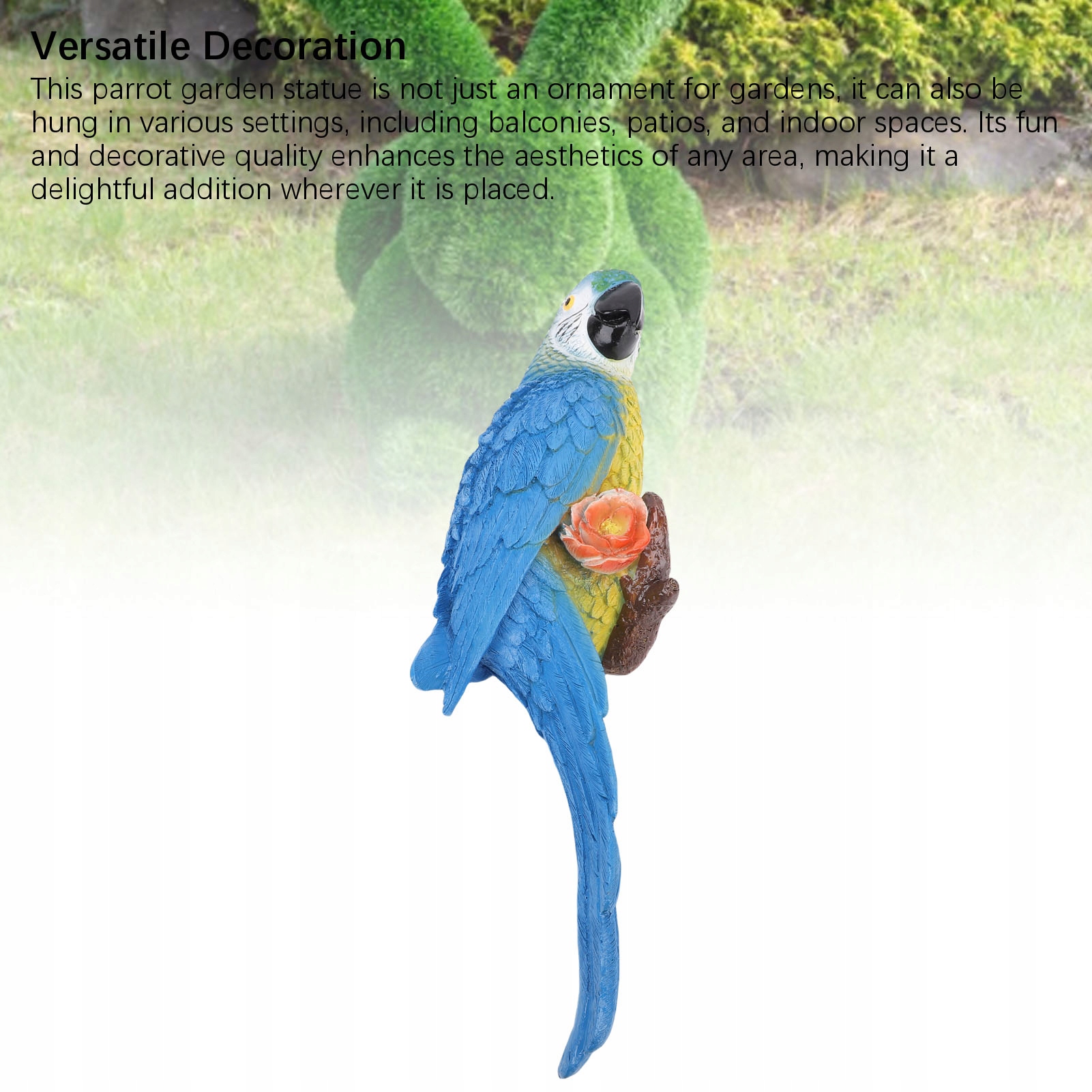 2. Доказательство погоды: материал смолы, используемой в этой скульптуре попугая, предлагает страстное доказательство погоды. Независимо от того, подвергается ли он интенсивному звуковому миру или дождливым условиям, он поддерживает свои яркие цвета и целостность материала, благодаря CZ подходит для прекрасного использования снаружи без исчезновения или ухудшения.