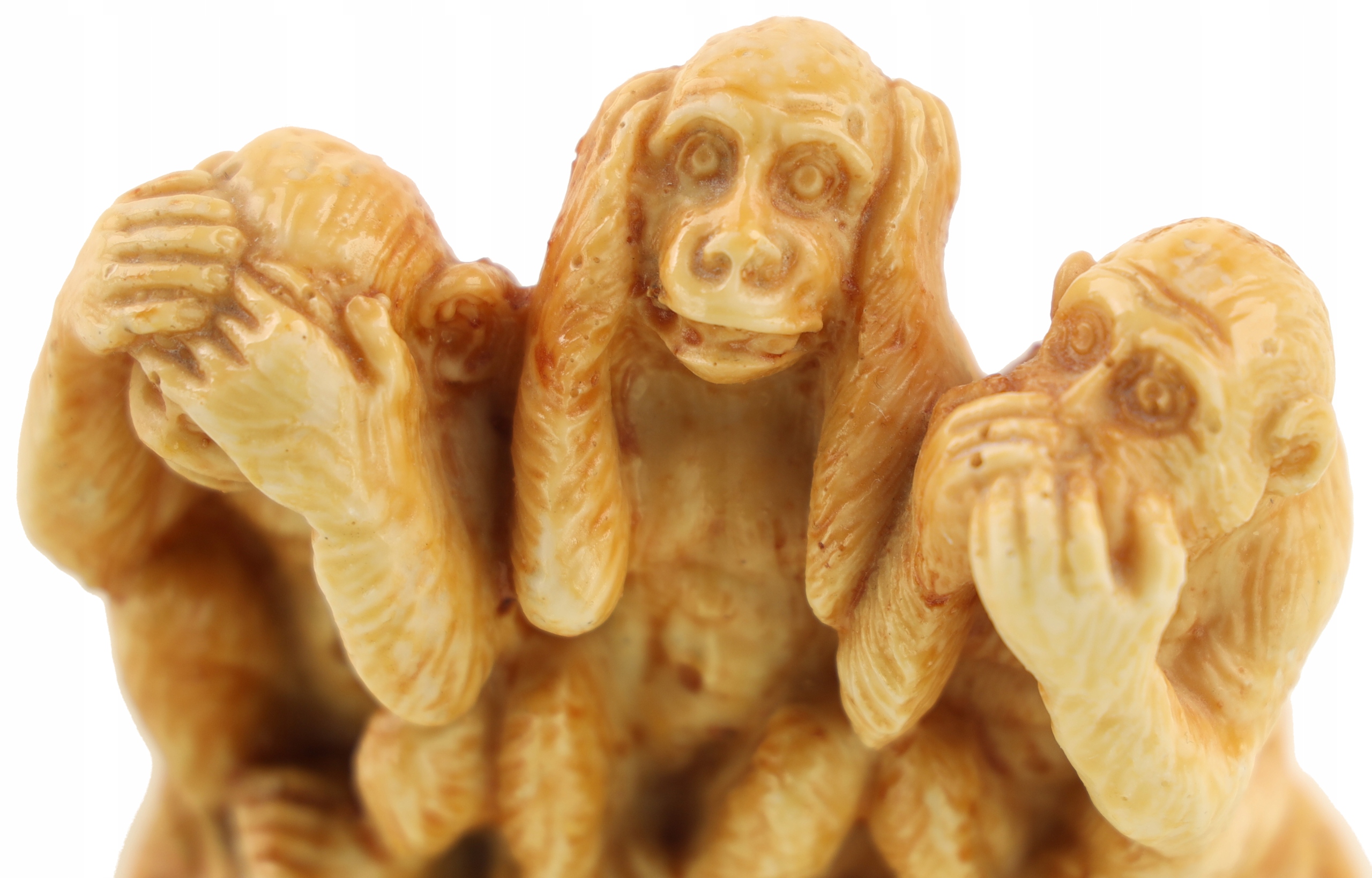 Скульптура из какого-то композита, изображающая трех мудрых обезьян, вероятно, периода Польской Народной Республики. Это японская пословица «не видеть зла, не слышать зла, не говорить зла», выраженная через скульптуру. Три обезьяны: Мизару, которая закрывает глаза, чтобы не видеть зла, Кикадзару, которая закрывает уши, чтобы не слышать зла, и Ивазару, которая закрывает рот и не говорит зла, что можно интерпретировать как: «Не ищи зла». и указывать на неправильные действия и слова других людей» (если хочешь искоренить зло, начни с себя) Источник: Википедия. Рекомендую