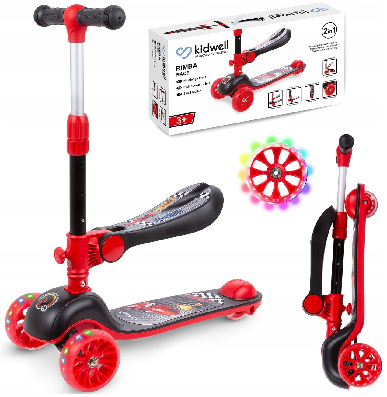 вождение скутера Kidwell Rimba 2in1 - фантастическая идея для активного свободного времени. Стабильный и безопасный скутер даст вашему ребенку много радости и веселья. Пониженное седло может изменить скутер в поездку. Это идеальный вариант для самых молодых, начинающих свое приключение с транспортных средств!