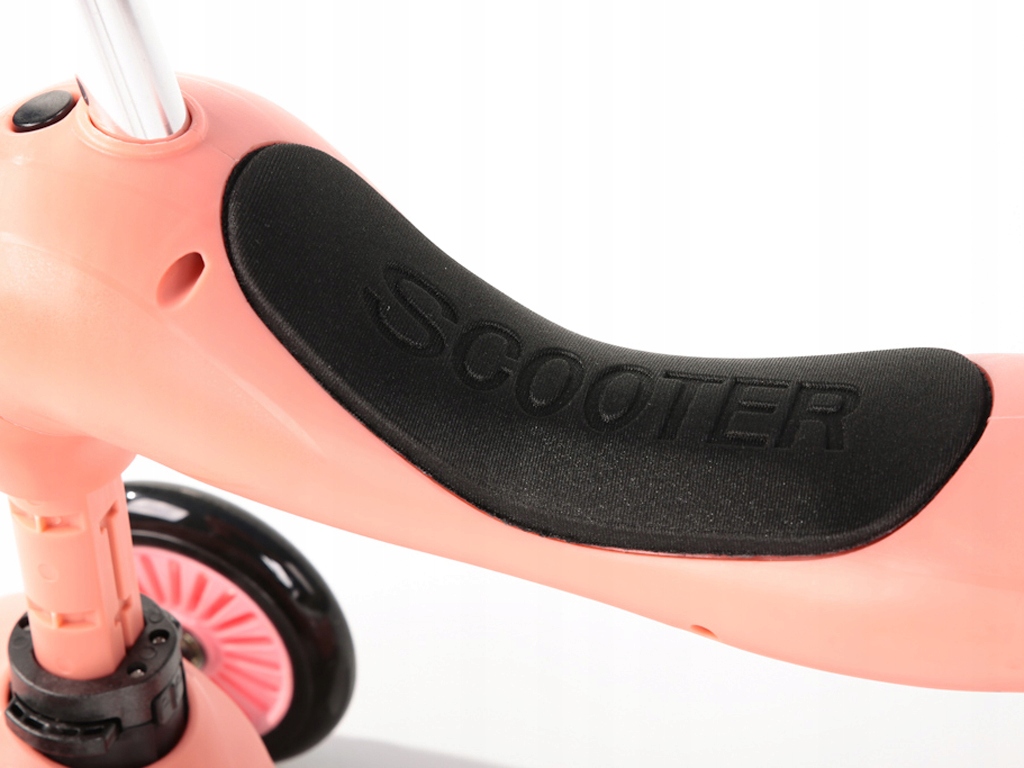 Полиуретановые колеса, обеспечивающие плавность хода, созданы на основе современной системы, что делает их не только тихими и долговечными, но и надежными в эксплуатации. условия сцепления с землей и амортизация. Для большей безопасности при использовании изделия в темное время суток заднее колесо самоката оснащено цветными фонарями. Кроме того, заднее колесо оснащено удобным ножным тормозом. Все для обеспечения максимальной безопасности вашего ребенка!
