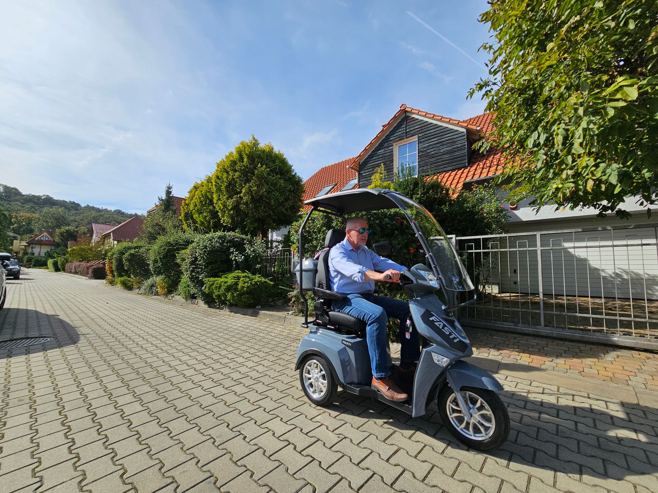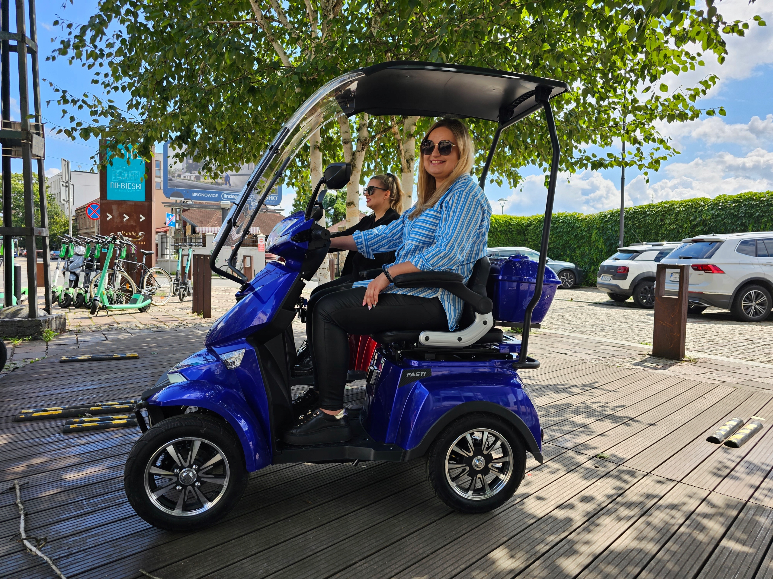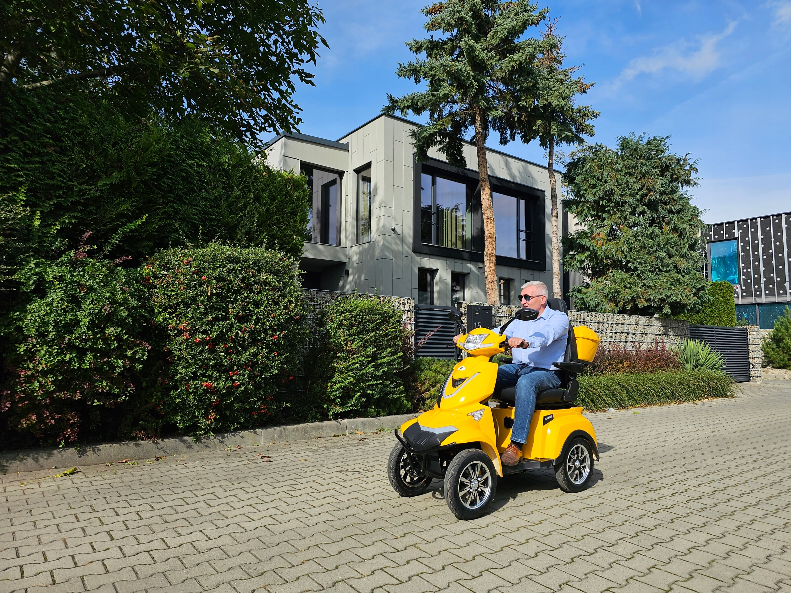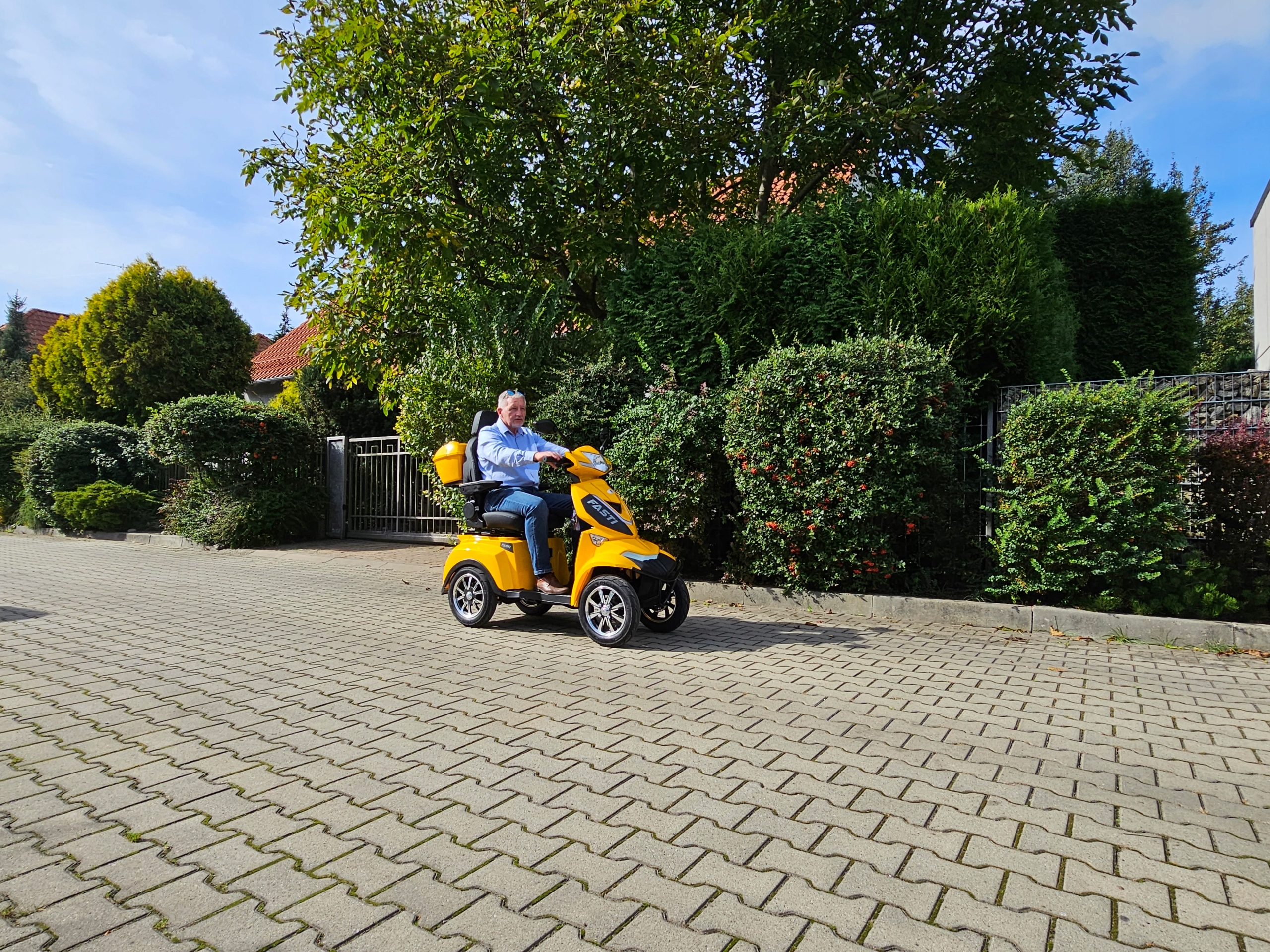 FASTI 4 MAX имеет больше оборудования, чем базовая версия – удобное сиденье с высокой регулируемой спинкой, регулируемые подлокотники и литий-ионный аккумулятор. Его можно снять и зарядить вне автомобиля. FASTI 4 MAX — новый, самый комфортабельный и облегчающий передвижение бескомплектный автомобиль марки ELECTRORIDE. Он имеет медицинскую справку, которая освобождает вас от необходимости регистрации и наличия водительских прав, а также позволяет обращаться с моделью FASTI 4 MAX как с пешеходом в дорожном движении. Это дает возможность передвигаться по тротуару, заходить в парк или даже в торговый центр!