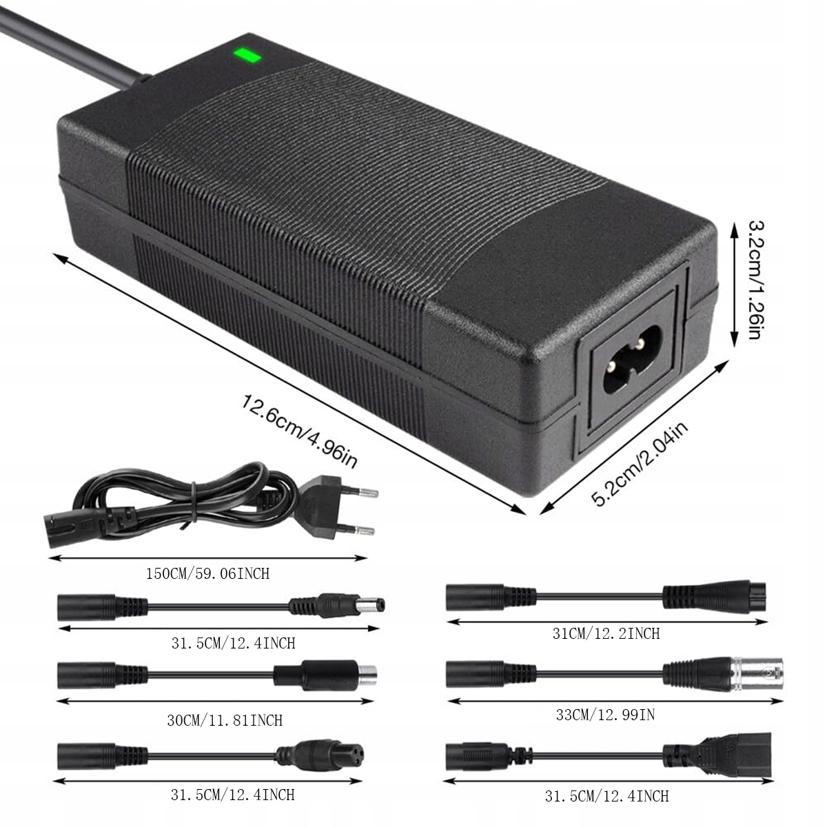 🛴🛴 Электрическое зарядное устройство 42 V 2A: Вход: 100-240VAC, 50-60 Гц; Выход: DC 42 V, 2a; Наши зарядные устройства широко совместимы с большинством моделей велосипедов и ховерборда. Прежде чем размещать заказ, проверьте размеры зарядного устройства и разъема.