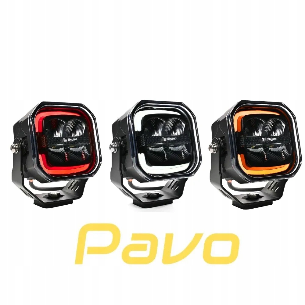 Skyled Pavo - идеальное решение для людей, которые хотят получить гаджет настройки вместе с рабочим светом. Pavo имеет встроенное положение положения света в трех цветах (белый, оранжевый, красный), и каждый из них выбирается во время сборки, выбирая выделенный кабель из луча для данного цветового света. Благодаря трех -функциональному положению света позиции, лампа становится универсальной и дает нам возможность установить его на каждой стороне транспортного средства.