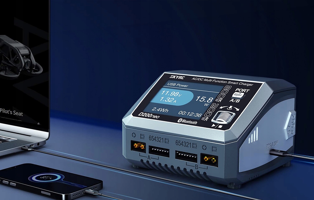 Устройство SkyRC оснащено двумя портами, которые работают независимо, обеспечивая эффективную и одновременную зарядку двух аккумуляторов. Более того, D200neo предлагает гибкость выбора между входом переменного и постоянного тока, адаптируясь к различным сценариям. В режиме переменного тока он обеспечивает мощность зарядки до 200 Вт, а в режиме постоянного тока эффективность увеличивается до 800 Вт. Кроме того, вы можете выбрать зарядку постоянного тока мощностью 800 Вт для максимальной эффективности или использовать зарядку переменного тока мощностью 200 Вт, чтобы адаптировать ее работу к вашим конкретным потребностям. D200neo — это абсолютная революция в мире радиоуправляемых зарядных устройств.
