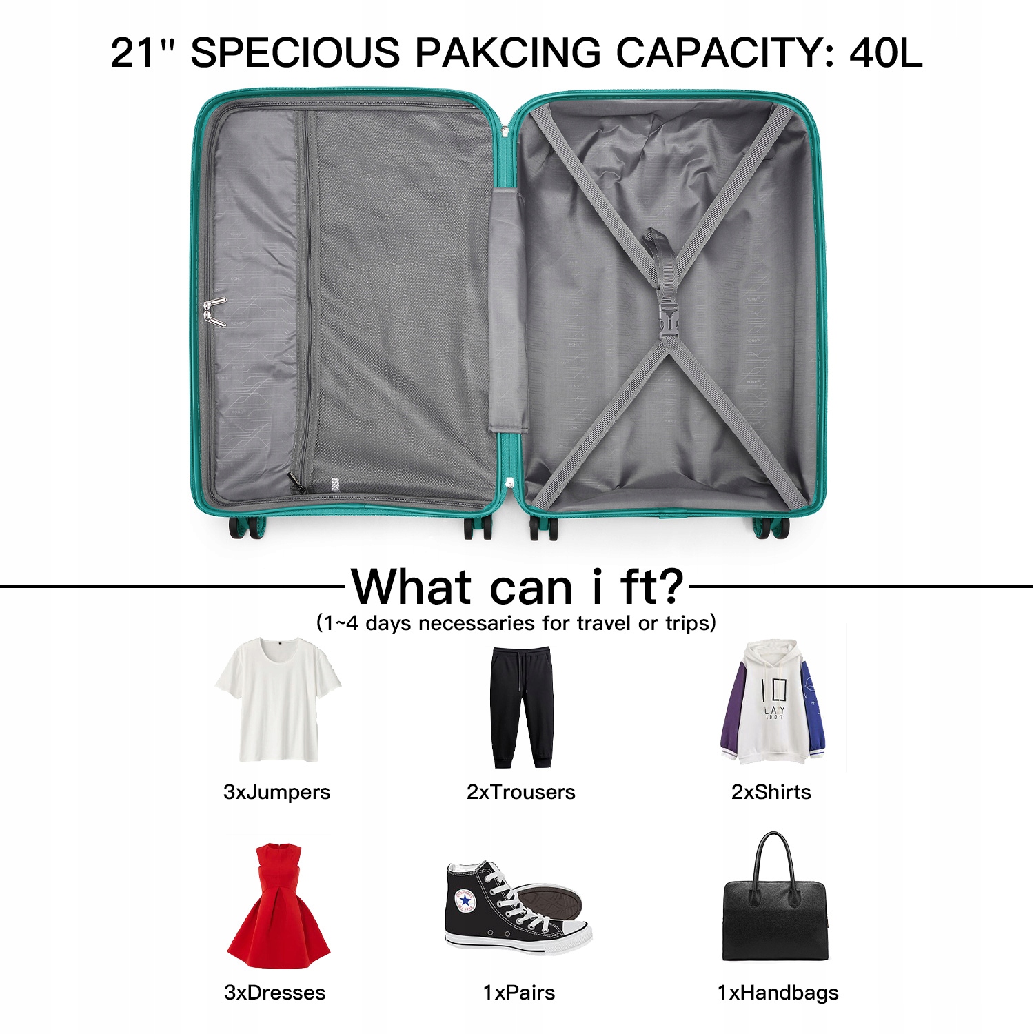 4 x 360 ° Поворотные колеса распределяют вес чемодана равномерно и обеспечивают легкий скольжение с помощью занятых аэропортов или железнодорожных станций. Легкая телескопическая ручка сцепления со многими настройками высоты.