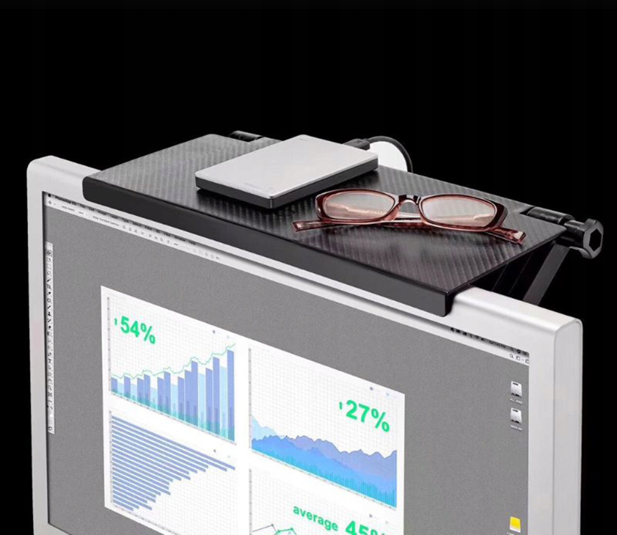 Удобная компактная полка, предназначенная для установки на верхнюю часть рамы телевизора или ЖК-монитора. Это позволяет разумно сэкономить место на столе и столе. Очень простая и неинвазивная установка предотвращает повреждение оборудования. Регулируемая ручка позволяет менять угол наклона полки и подогнать ее к задней части экрана. Отличный гаджет, позволяющий удобно хранить пульт от телевизора или другие мелкие предметы.