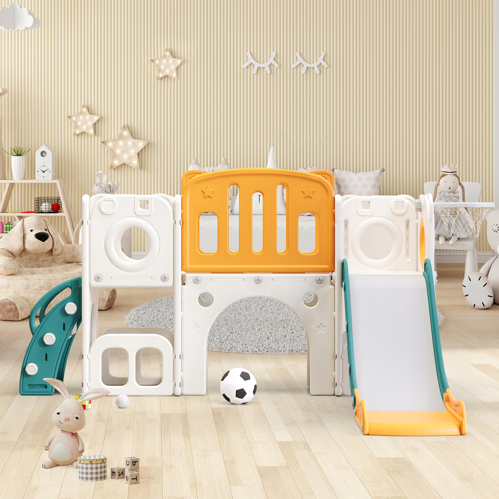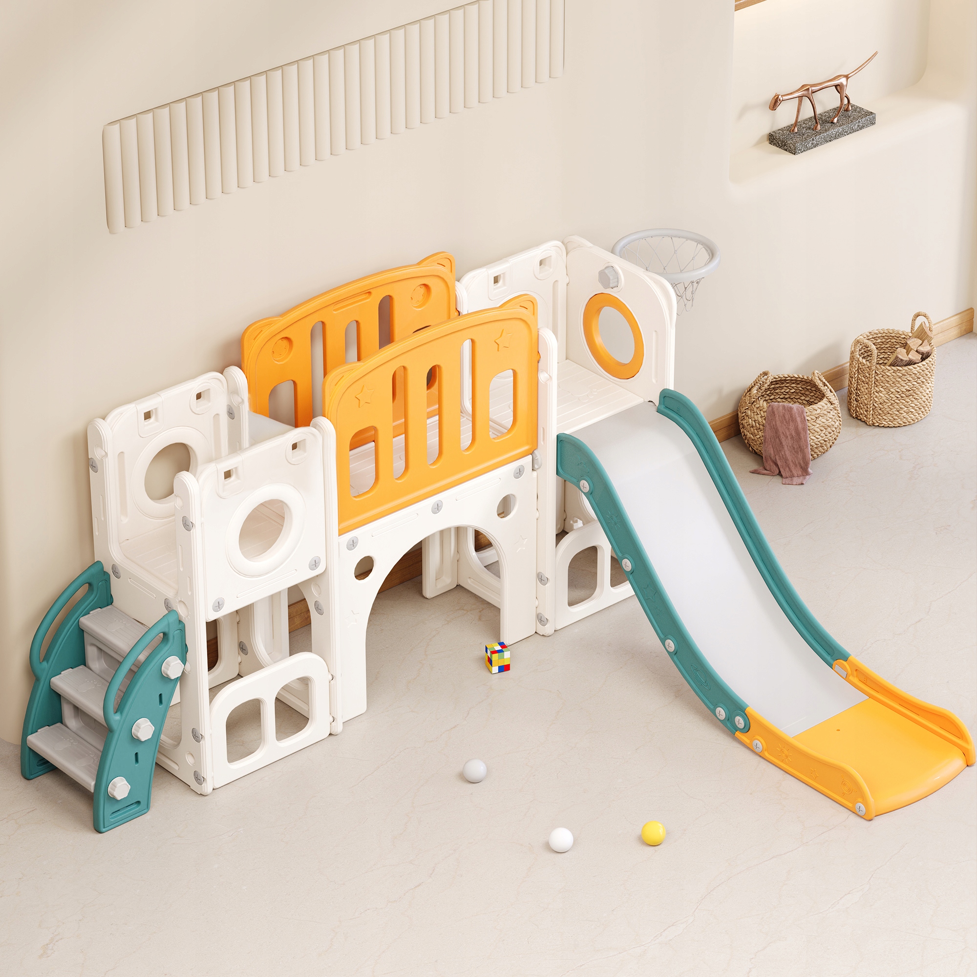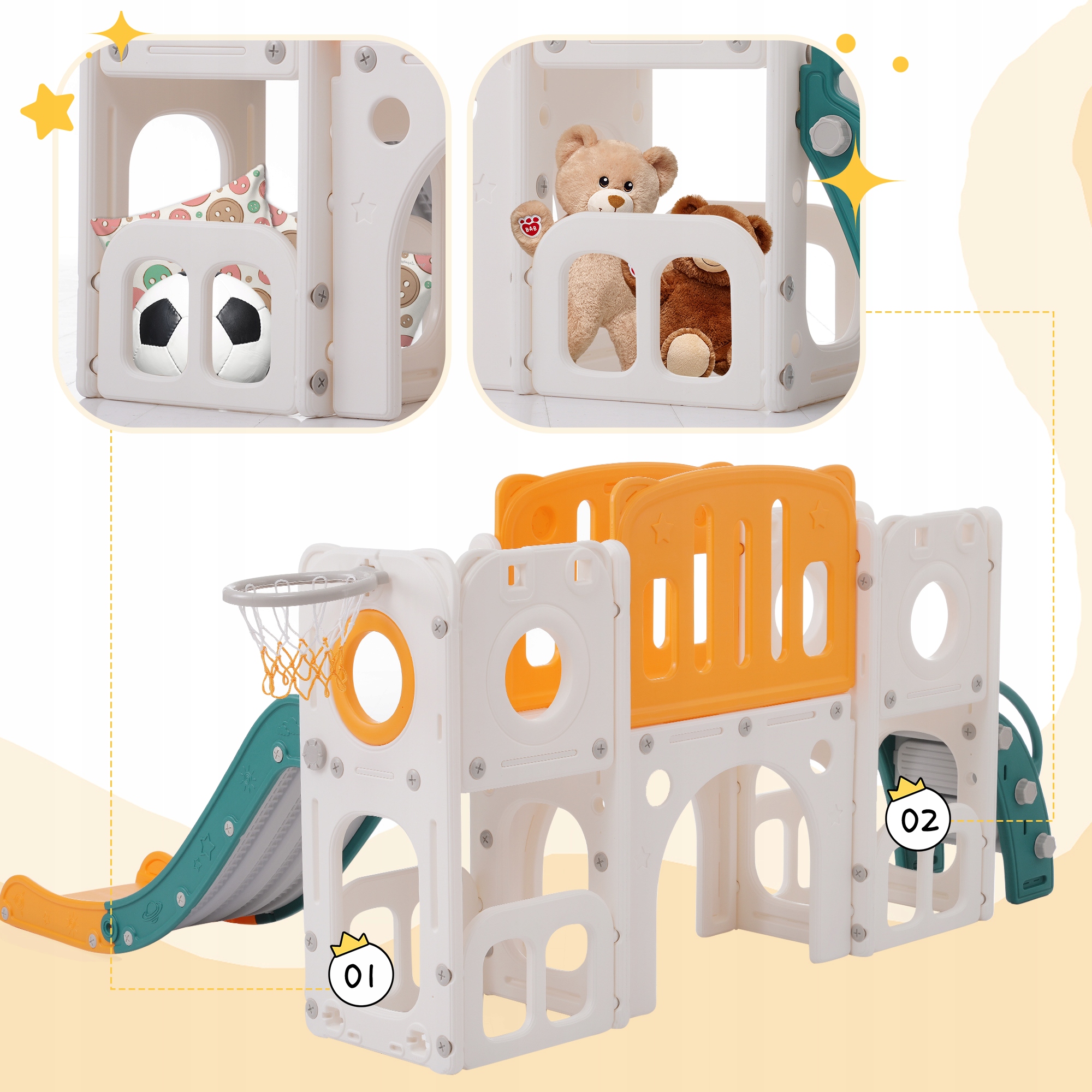 Слайд для детей 6 в 1 с одной гонкой, двумя платформами, двумя этажными шкафами, баскетбольными ободами и лестницей - полиэтилен высокой плотности (океанские шарики не являются частью набора)