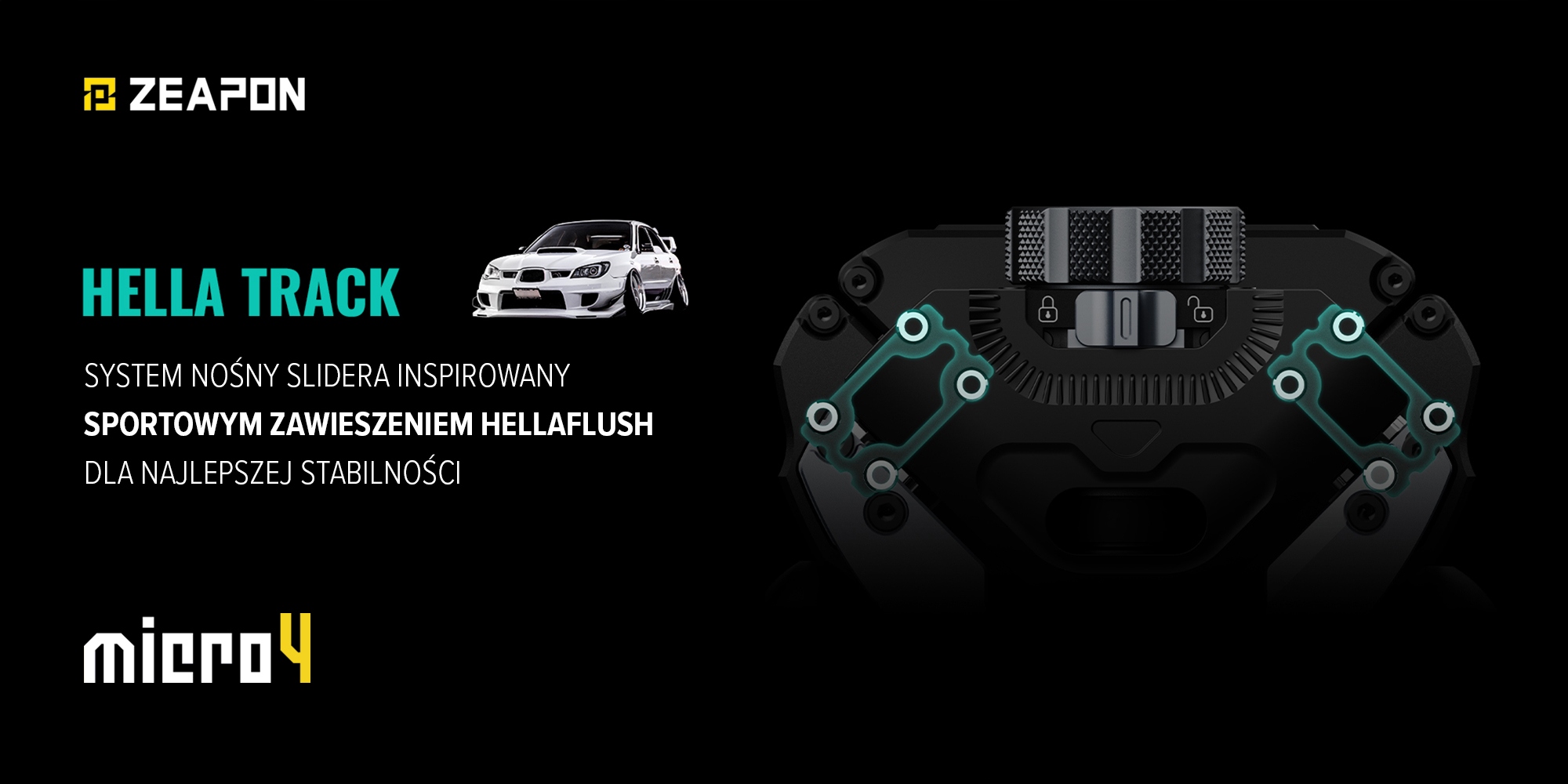 Четвертое поколение семейства Micro Zeapon по -прежнему черпает вдохновение в мире модификаций спортивных автомобилей, предлагая решения, которые обеспечивают максимальную стабильность и плавность движения. Дизайн ползунка был разработан в духе настройки Hellaflush, где идеальное распределение веса и оптимального подсчета обработки. Установка рельса под углом 45º делает нагрузку на тележку идеально сбалансированной, а слайдер работает с еще большей точностью - даже во время динамических снимков.