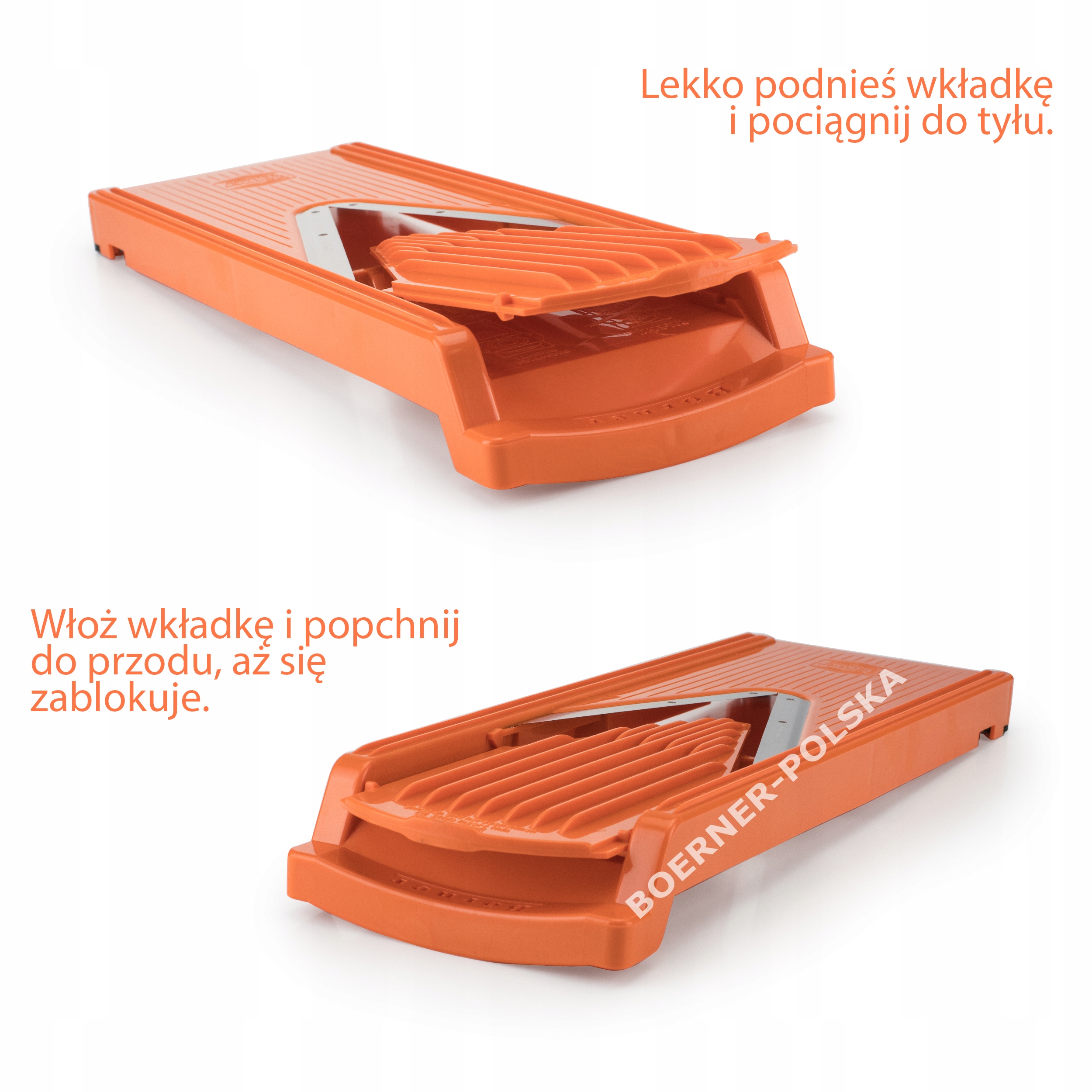 - Вставка без ножей – т. н. вставка 0 – это единственная вставка, которую можно использовать с обеих сторон. Используя одну сторону, мы получим тонкие ломтики 2 мм, а перемещая вставку на другую сторону, получим толстые ломтики 5,5 мм.