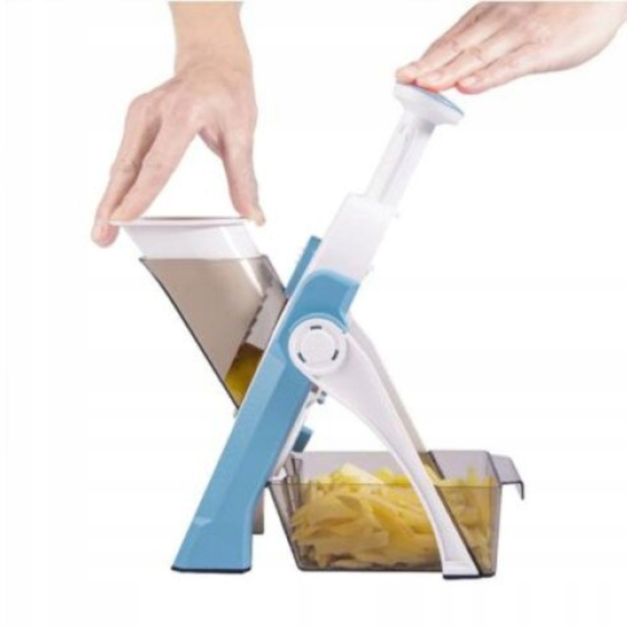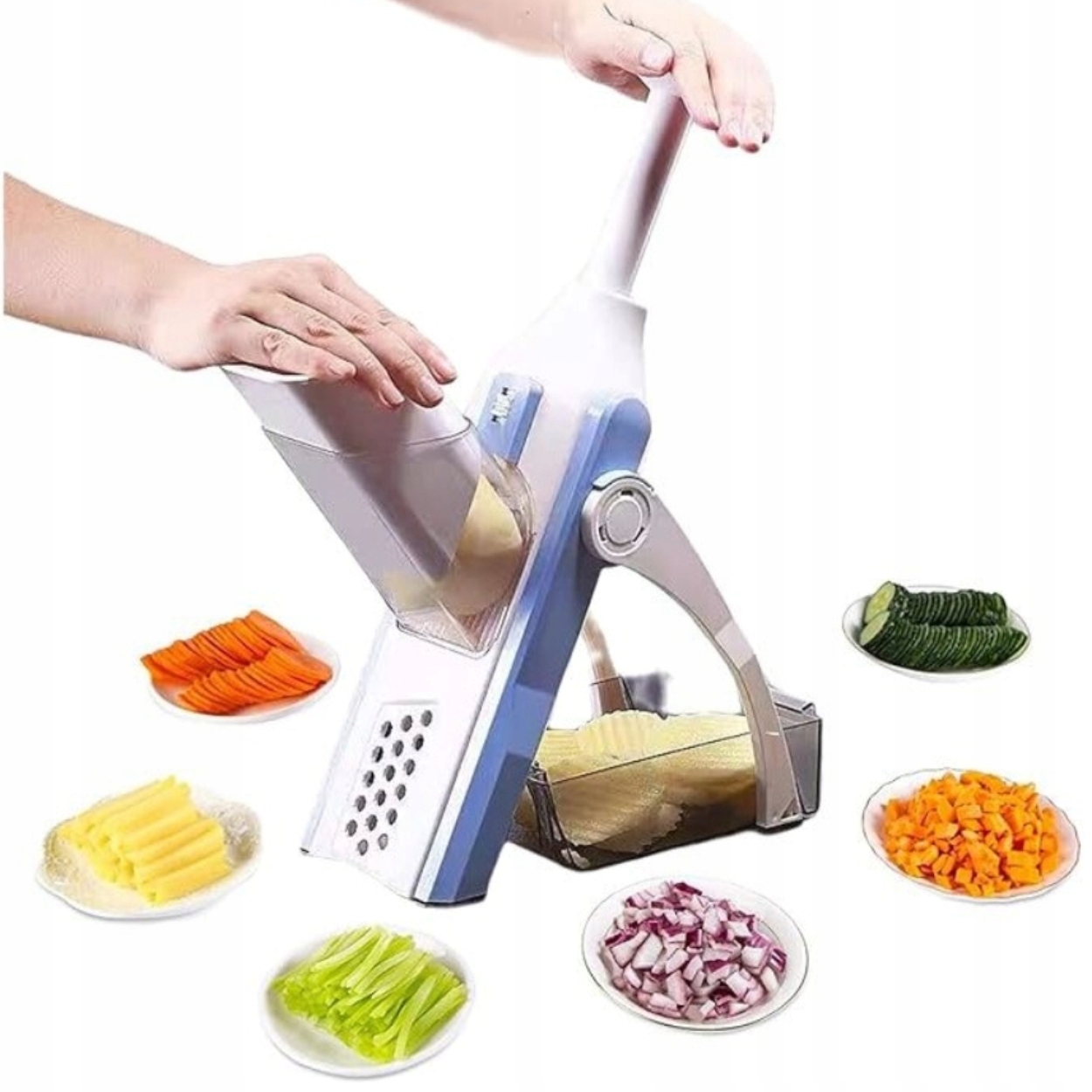 Благодаря сменным лезвиям и прочной конструкции он позволяет всего за несколько минут подготовить салаты, сырые салаты, картофель фри или ломтики для варки и запекания. Это практичное и универсальное устройство, которое облегчит повседневное приготовление пищи.