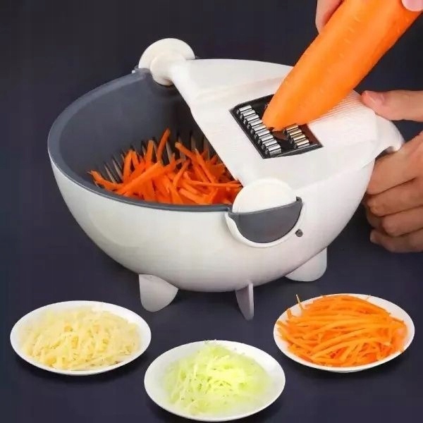 Многофункциональная овощерезка/резка с чашей и дуршлагом + 5 лезвий + овощечистка + ручка