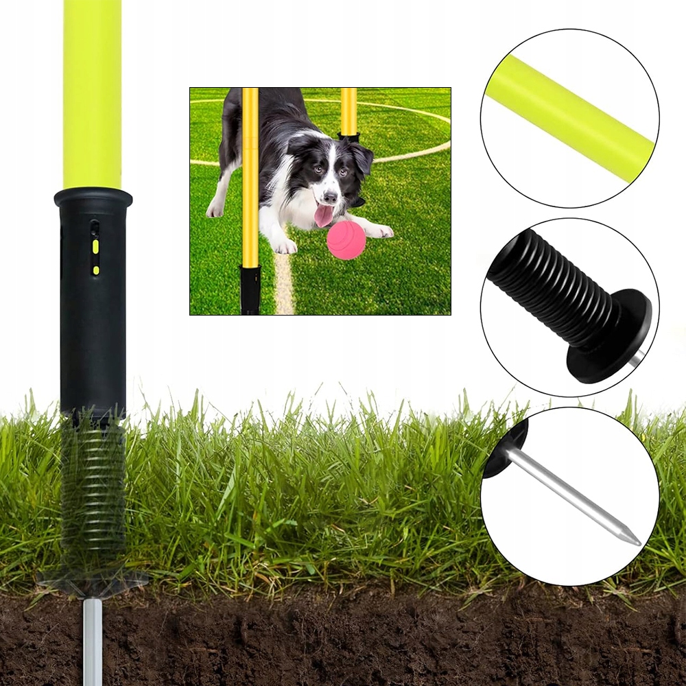 ⚽ 6-полюсного многофункционального тренера по ловкости- b> Идеально подходит для упражнений в футболе, обучении скорости и координационным упражнениям. Регулируемые 63-дюймовые стержни с металлическими шипами придерживаются травы/газона, обеспечивая динамические дорожки слалома.