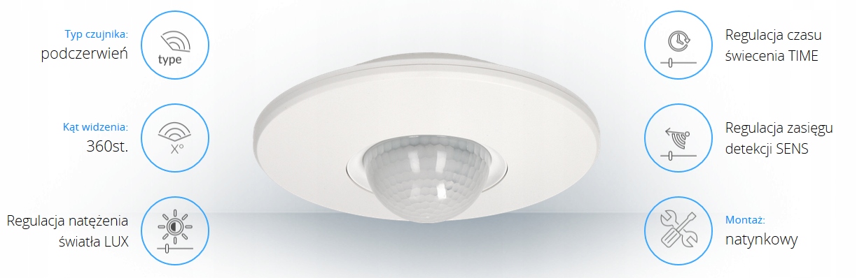 УЛЬТРАПЛОСКИЙ ДАТЧИК ДВИЖЕНИЯ, СУМЕРКИ, 360 ГРАДУСОВ