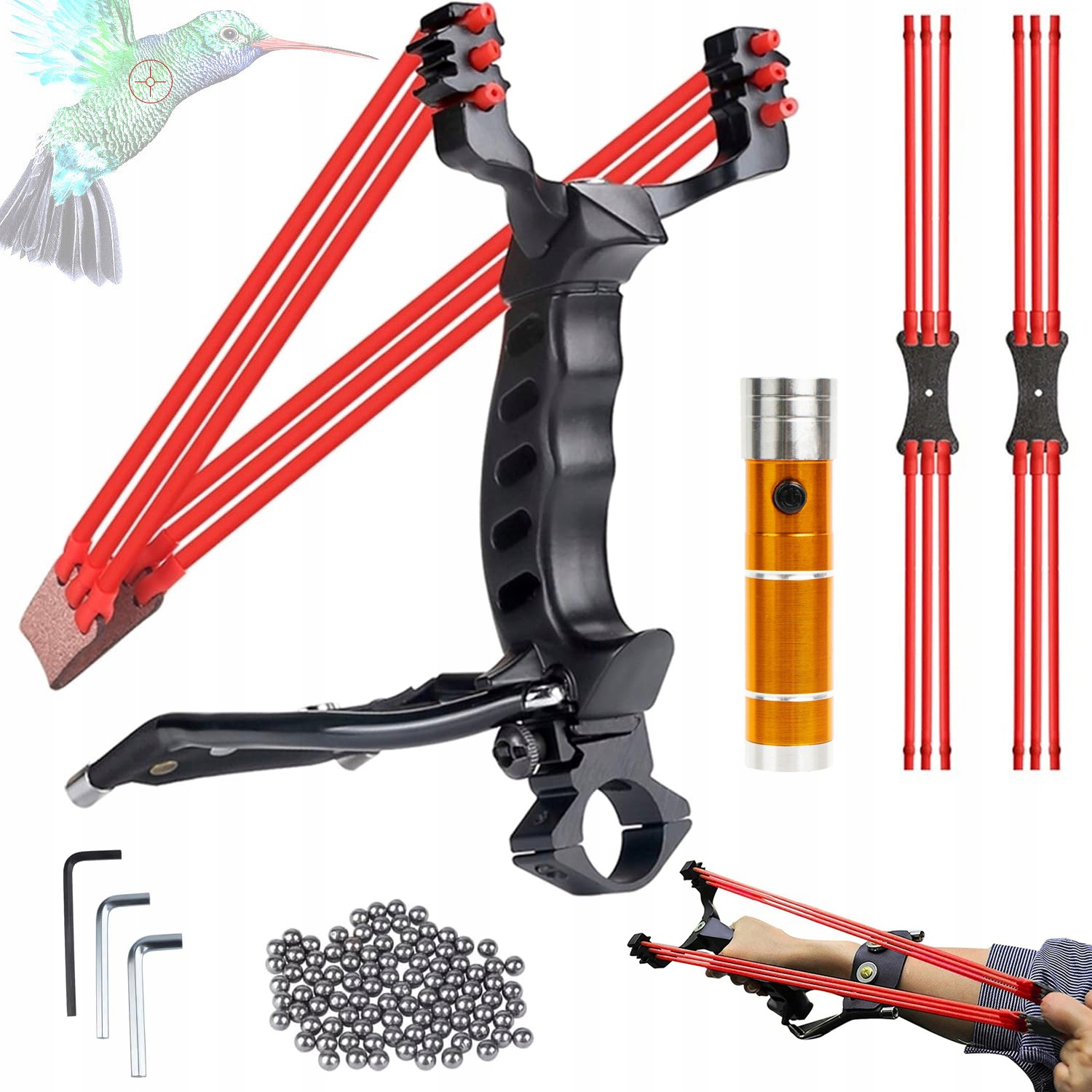 - Регулируемая поддержка запястья и рогатка с золотыми пропорциями, складывание наклона, легко использовать и удобно переносить, с лазерной пропускной ручкой, позволяет вам тщательно охотиться ночью.