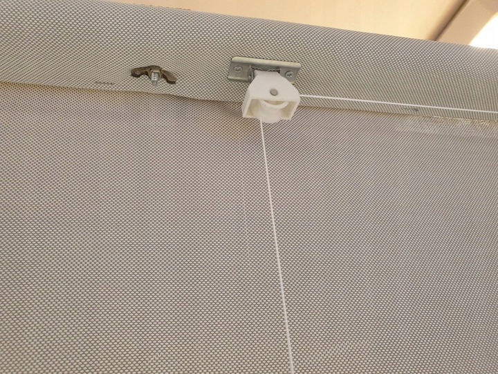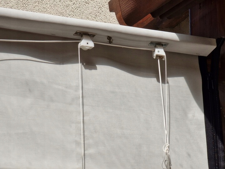 Слепой может быть прикреплен к стропилам, используя SO -SALLED -OFF. Рукоятка вращается после того, как повернул его, замок глаза.