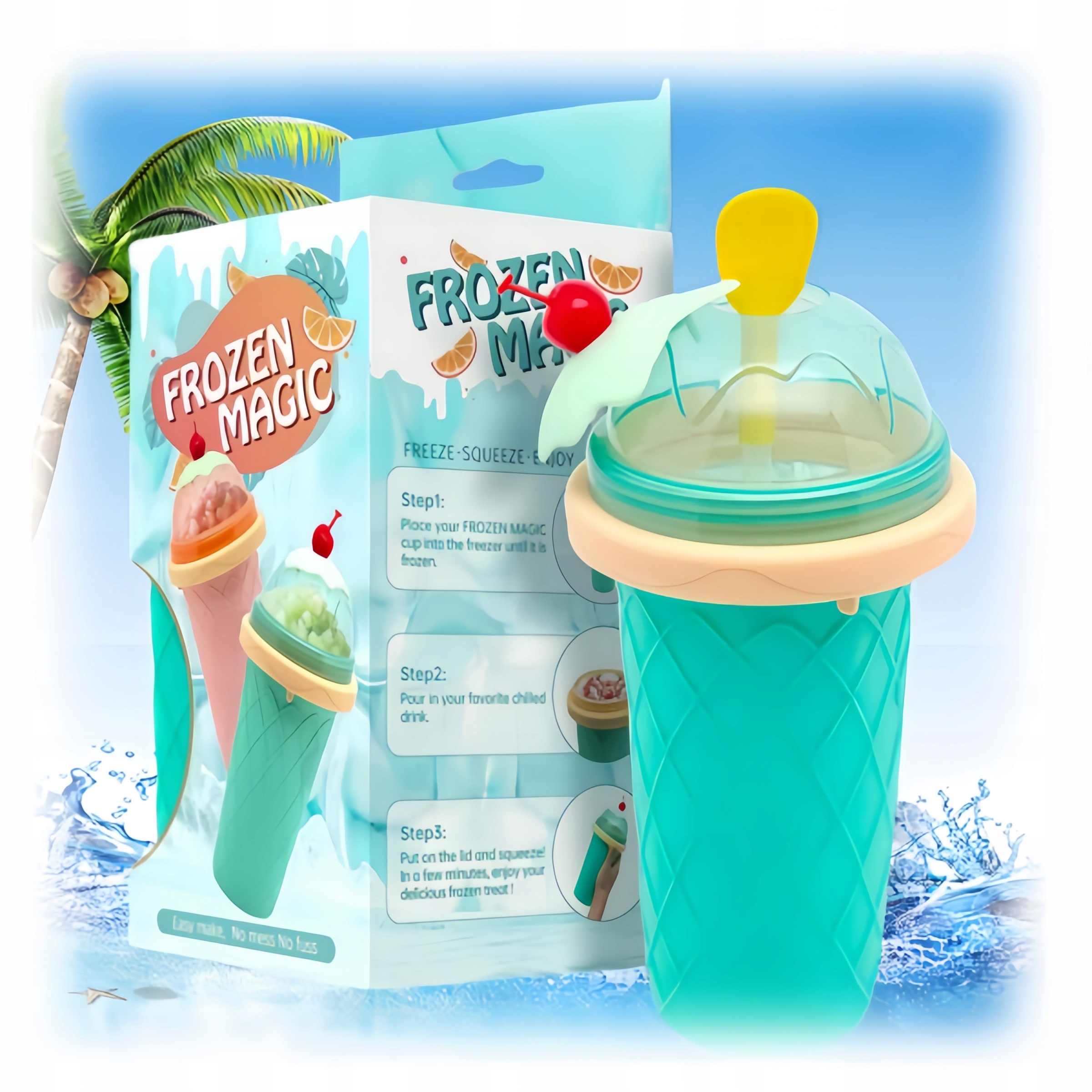 - Наконец-то сжимайте Magic Slushy Maker Cup своими пальцами в течение 2-3 минут, пока она не взобрана с Smoothie и наслаждайтесь ею. Убедитесь, что вы и свою семью самую прохладную летнюю еду в самое короткое время.