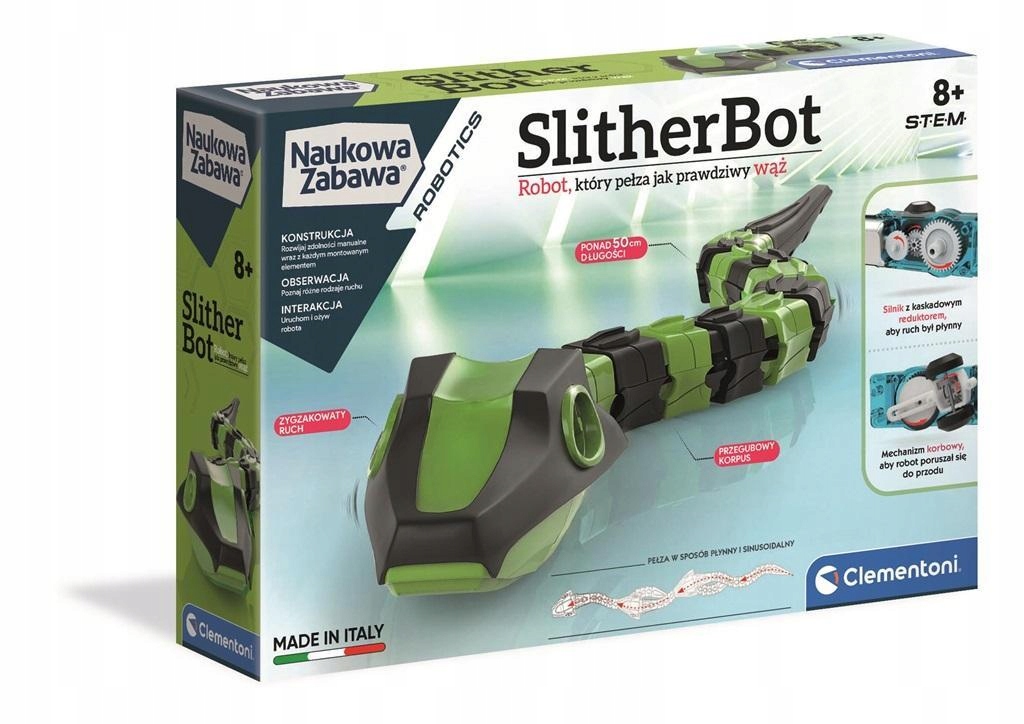 Сборная змея, которая оживает и начинает ползать по комнате, как живая! Движущийся робот — это беспрецедентное развлечение. Длина змеи составляет 40 см, что делает взаимодействие еще более увлекательным. Собрав 12 верхних и нижних сегментов, просто включите его, чтобы увидеть, как он движется и приглашает вас поиграть. В двигателе имеется шестерня, благодаря которой ступица перемещается то вправо, то влево. Таким образом, животное плавно движется вперед, совершая реалистичные синусоидальные движения. После включения робот начинает перемещаться вокруг вашего малыша, скользя в щели и углы, как настоящая змея. Модульная структура робота позволяет воссоздать невероятно реалистичные корчи, точь-в-точь как у змеи.
