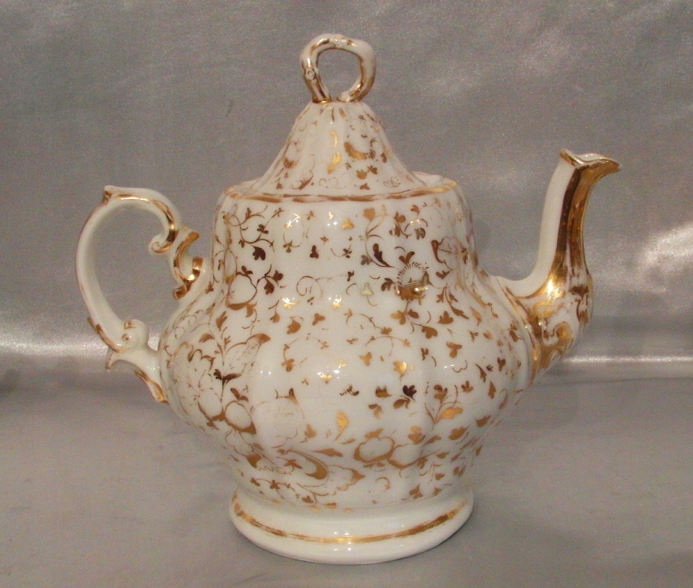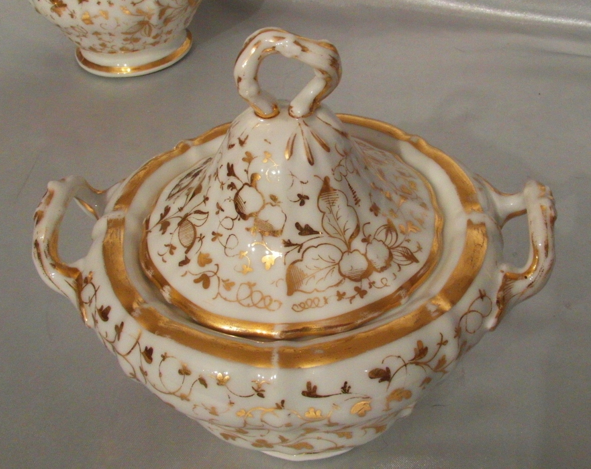 Белый фарфор, привлекательная форма. Декоративная позолота по всей поверхности.