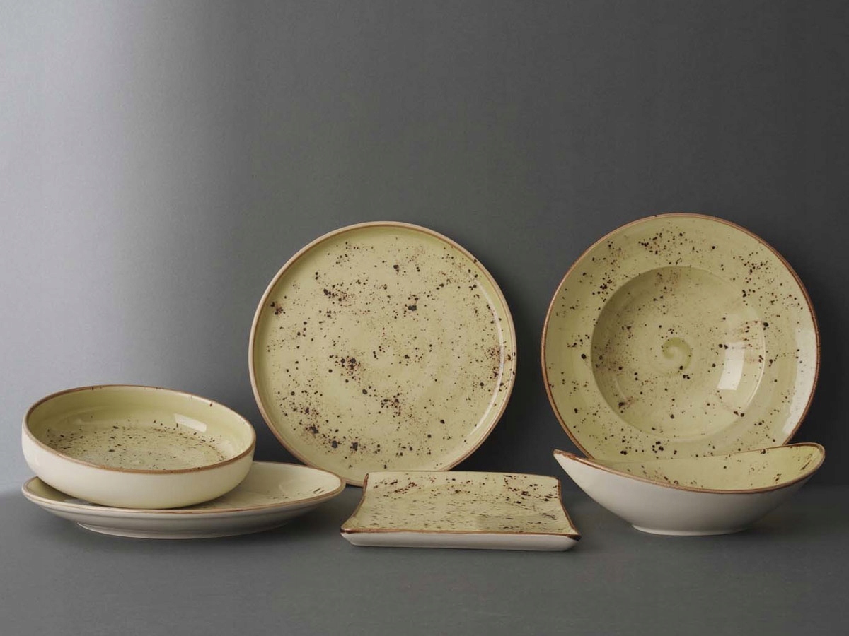 - Земля Colous Fine Dine Series - это цвета природы и широкий выбор различных типов сосудов, таких как тарелки, тарелки, салатные чаши или чашки, которые могут быть составлены любым способом