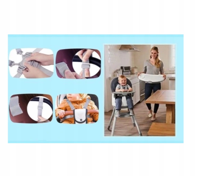 - Пояс безопасности детского кресла может быть легко прикреплен к стульям для использования в питомниках, в ресторанах, отелях или других детских креслах.