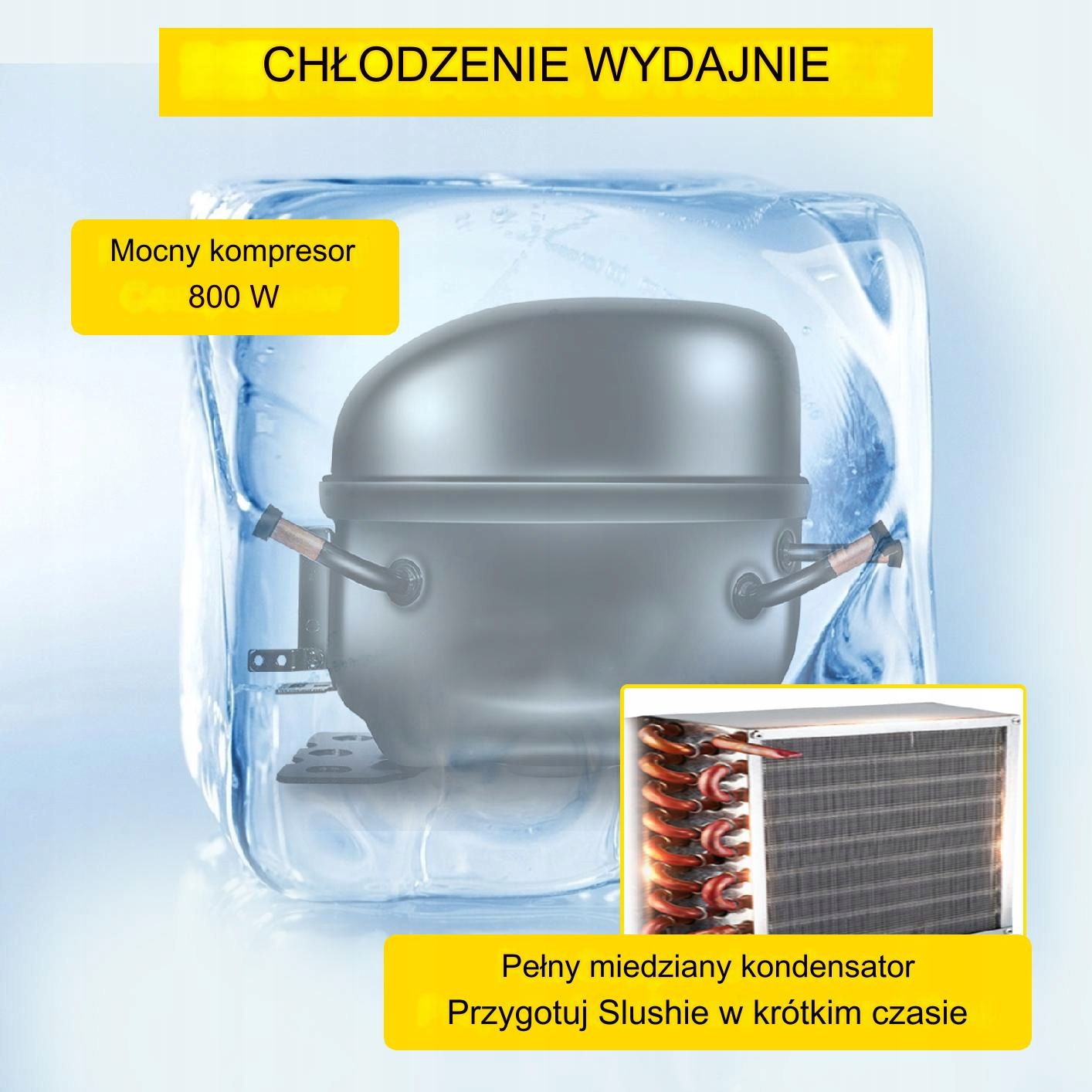 Эффективный компрессор мощностью 800 Вт обеспечивает быстрое охлаждение, экономию энергии и низкий уровень шума. Аппарат готовит жидкое мороженое за 50 минут, имеет систему антизамерзания и качественный конденсатор для стабильной работы.