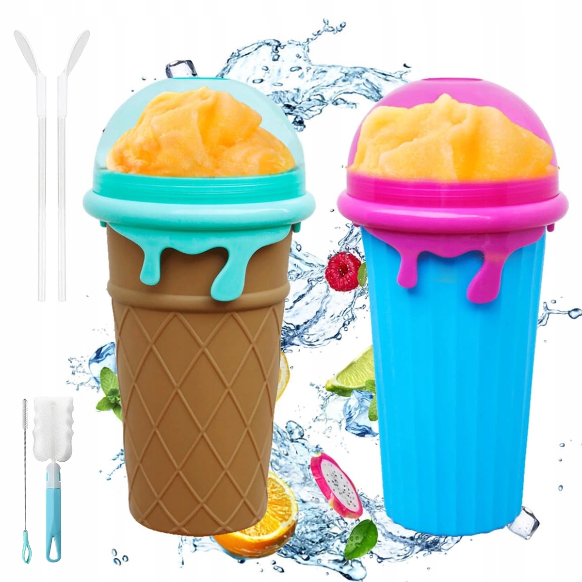 ⭐⭐⭐⭐⭐Набор чашек для слякоти, 2 предмета (коричневый + синий), силиконовая чашка для отжима, чашка для слякоти для приготовления смузи, чашка для слякоти, чашка для приготовления замороженного смузи, чашка для смузи Frozen Maker, летняя чашка для слякоти с трубочкой⭐⭐⭐⭐⭐