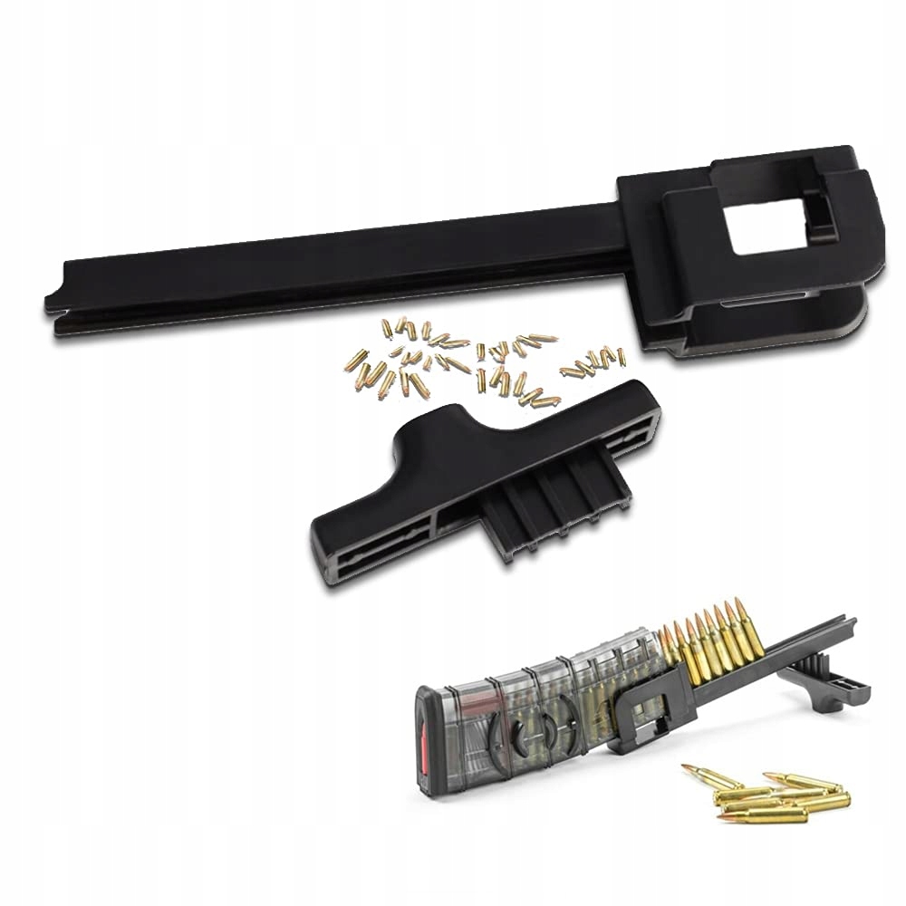 заряжает следующие калибры: 5,56 x 45/.223, .308, 7,62 x 39, 300blk, 5,45 x 39, 9 мм (винтовка) и больше ... боеприпасы, 20 коробок с картриджами или также могут использоваться для зарядки боеприпасов