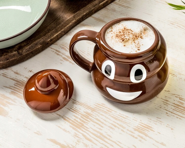 Уникальная и неповторимая кружка «Купа» ;) для всех, у кого есть чувство юмора и дистанция к себе и жизни. Кофе или чай, какао или горячий шоколад уже никогда не будут прежними на вкус, когда вы выпьете их из нашей кружки со смайликом, и в то же время будет много смеха, когда вы поставите такую кружку на табуретку... ага, я имею в виду столик ;) Кружка имеет лицевую крышку, которая идеально подходит для заваривания любимого чая, а также не дает содержимому быстро остыть. Большая кружка «Купа» отлично смотрится как на домашнем столе, так и на рабочем столе компании, где ее также можно использовать как подставку для ручек или других офисных предметов. Норман, муха не сидит ;)
