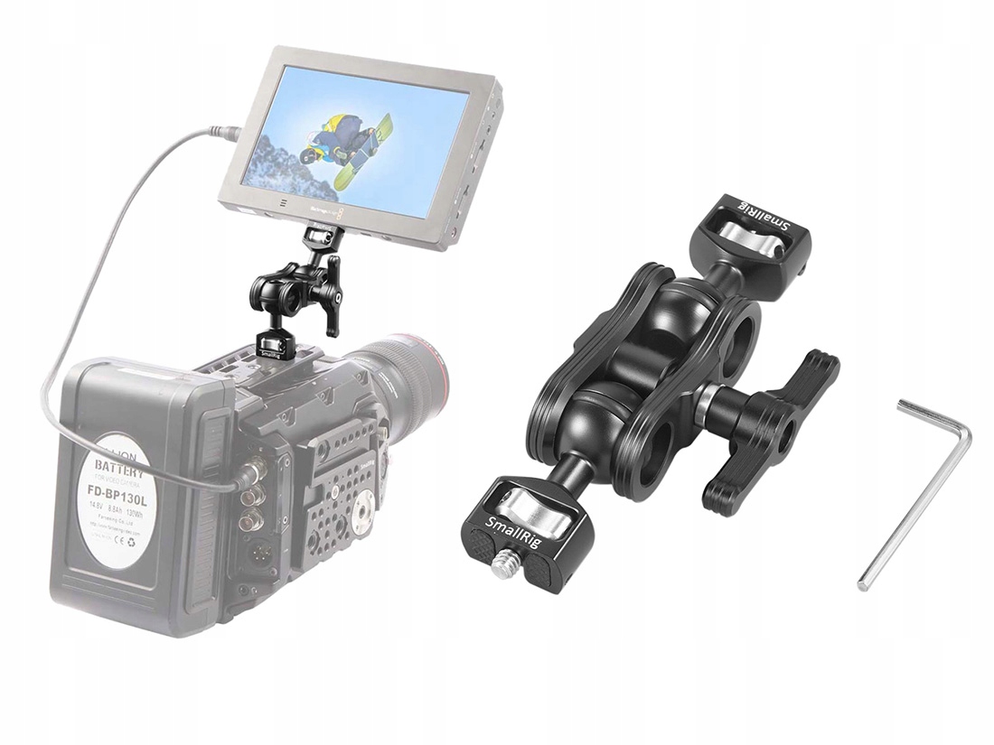 К нему можно прикрепить клетку с резьбовыми отверстиями 1/4"-20, например SmallRig Sony Camera Cage 1661, или верхнюю пластину с резьбовыми отверстиями 1/4"-20, например SmallRig Top Plate 1853/1974/2032 на на одном конце, а на другом конце можно также прикрепить монитор с резьбовым отверстием 1/4 -20.