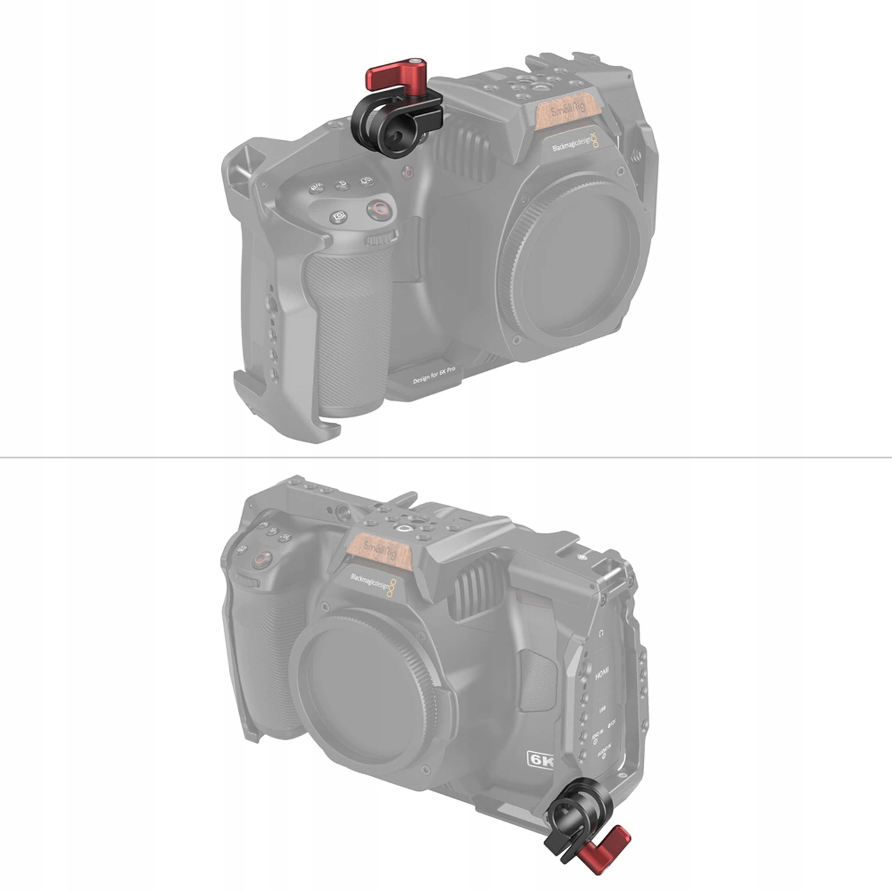 Аксессуар создан для специальной клетки SmallRig 3270 для Pocket 6K Pro. Они крепятся к клетке с помощью винта 1/4 дюйма со штифтом, фиксирующим монтажное положение.