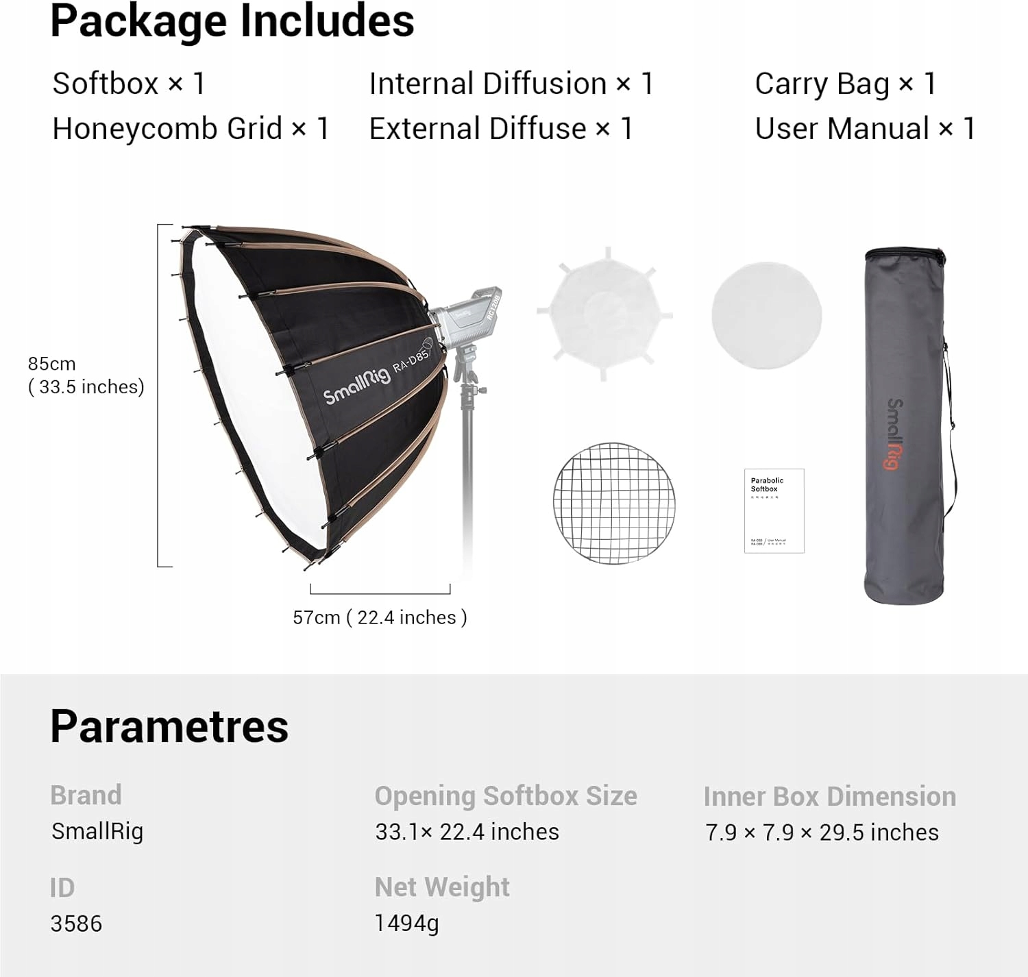 SmallRig 3586 RA-D85 Параболічний софтбокс із сіткою