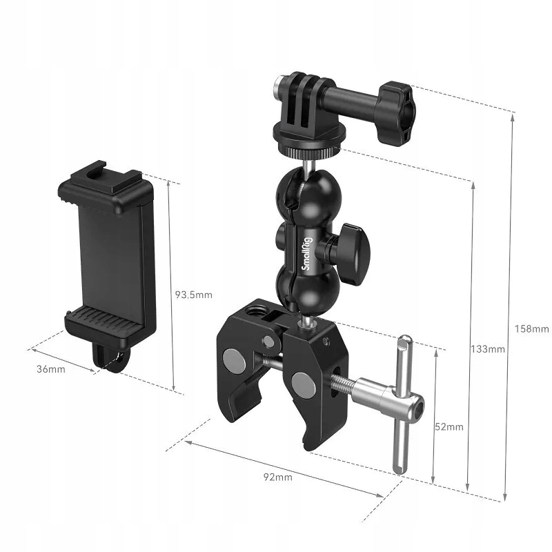 Набор зажимов-крабов SmalRig 4373 с волшебной рукояткой, держателем для телефона и креплением для спортивной камеры