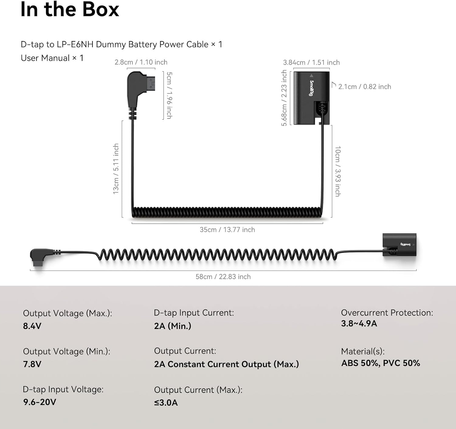 Smallrig D-Tap для фиктивной кабельной фиктивной батареи LP-E6NH-4252