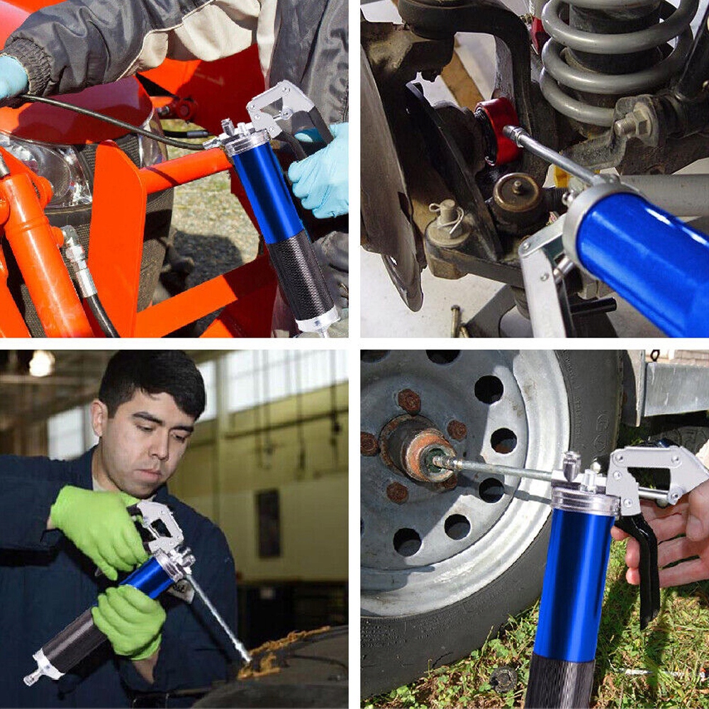 - - Смазочным шприцом можно легко управлять с помощью одного руку благодаря пистолетной рукоятке. Это позволяет вам по-прежнему иметь свободу рук, например, чтобы лучше закрепить и удерживать насадку на шланге. Кроме того, нескользящая ручка обеспечивает лучший и более надежный захват пресса.