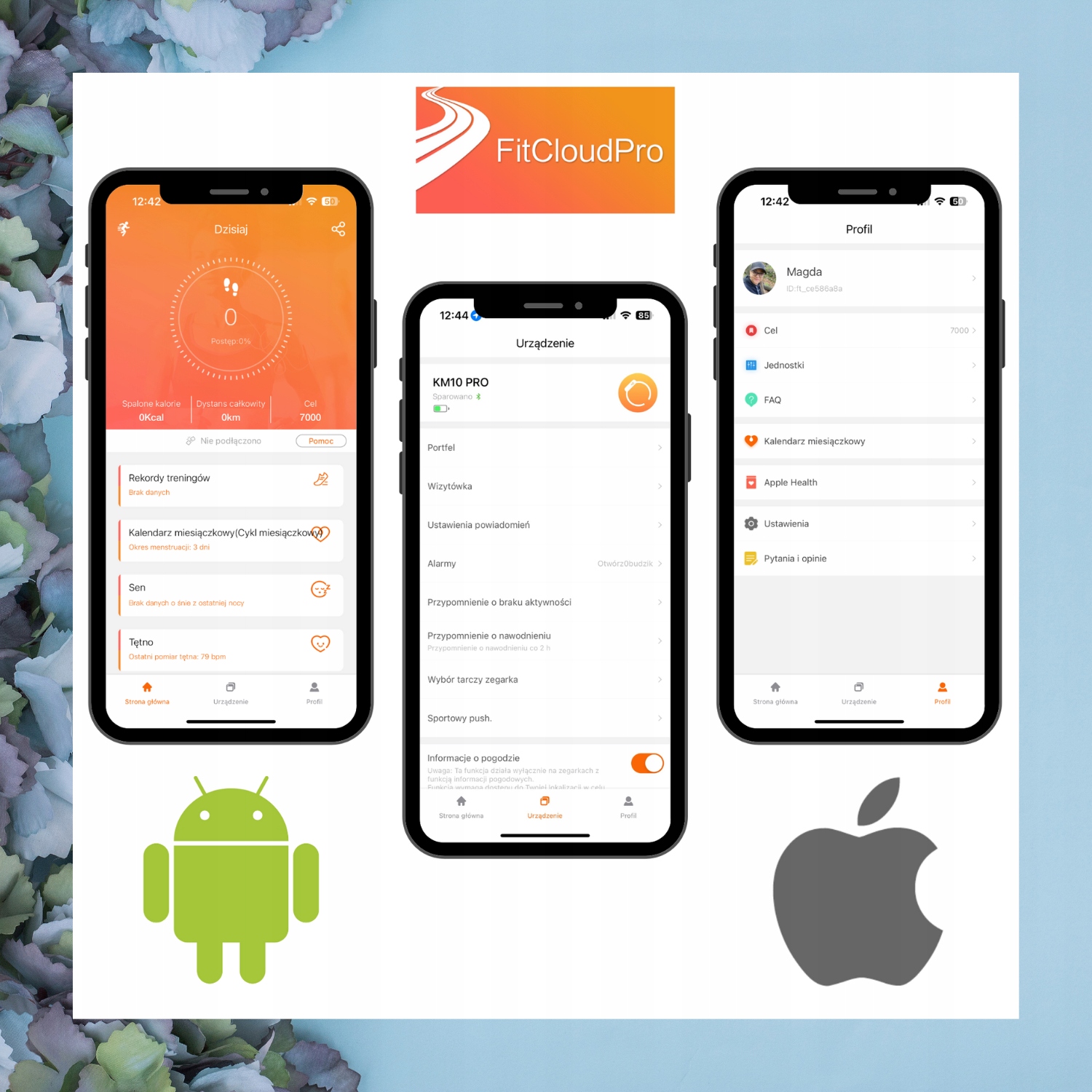 Smart Wwatch работает с приложением FitCloudpro, доступным в польском языке на Android и iOS. Приложение доступно бесплатно в магазине Play и App. Вы также можете загрузить его, используя QR -код, который находится в руководстве пользователя, прикрепленного к упаковке.